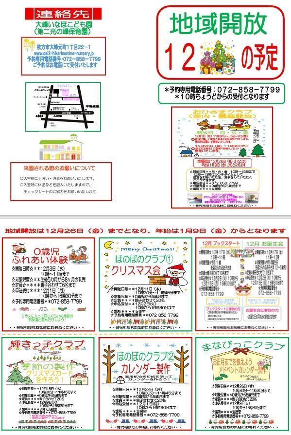 ホームページに12月の予定を掲載致しましたので、ご確認をよろしくお願いいたします。