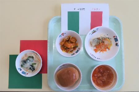 月に一回の今月の「お楽しみ献立」は世界の料理です。9月はイタリア料理です。