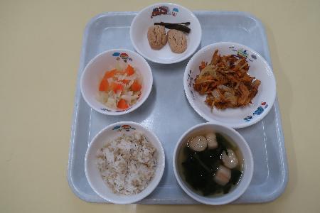 本日の虫歯予防デーの献立の発芽玄米は、ビタミンBが豊富で、栄養はもちろん、歯ごたえがあり、よく噛むことで唾液の分泌を促します。唾液には抗菌・殺菌作用があるため虫歯予防にも効果的です。