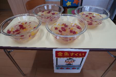 絵本を見て楽しいイメージが膨らんでいたようで、おやつの金魚すくいゼリーも、「金魚すくえたー♪」と、スプーンですくえたのがとっても嬉しそうでした。
