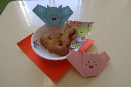 おやつのハロウィンクッキーも、かぼちゃ・おばけ・こうもりなどに可愛く型抜きされていて、とっても美味しかったです。