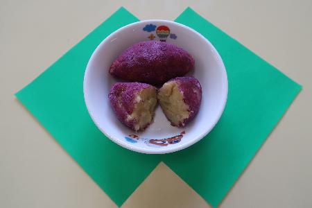 子どもたちはお芋に見立てたスイートポテトを見るなり、「わぁー!!お芋やー!」と大喜び!本当にお芋に見えました。