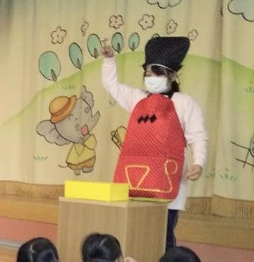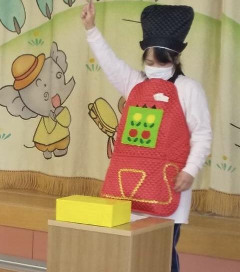 先生からのお楽しみはエプロンシアター「マジック