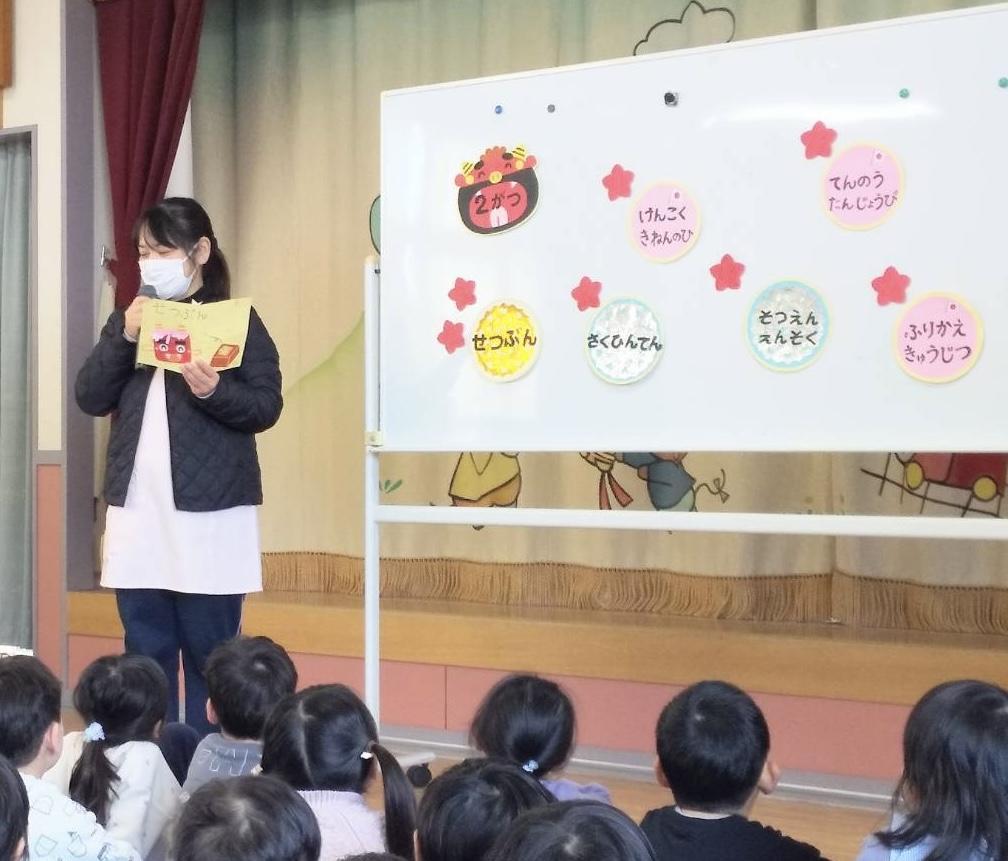 続いて、先生から2月の出来事のお話を聞きました。