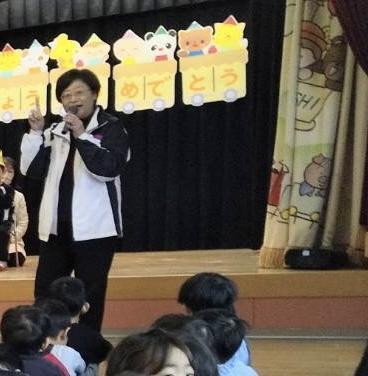 締めくくりに季節の歌をうたい、誕生会は終わり