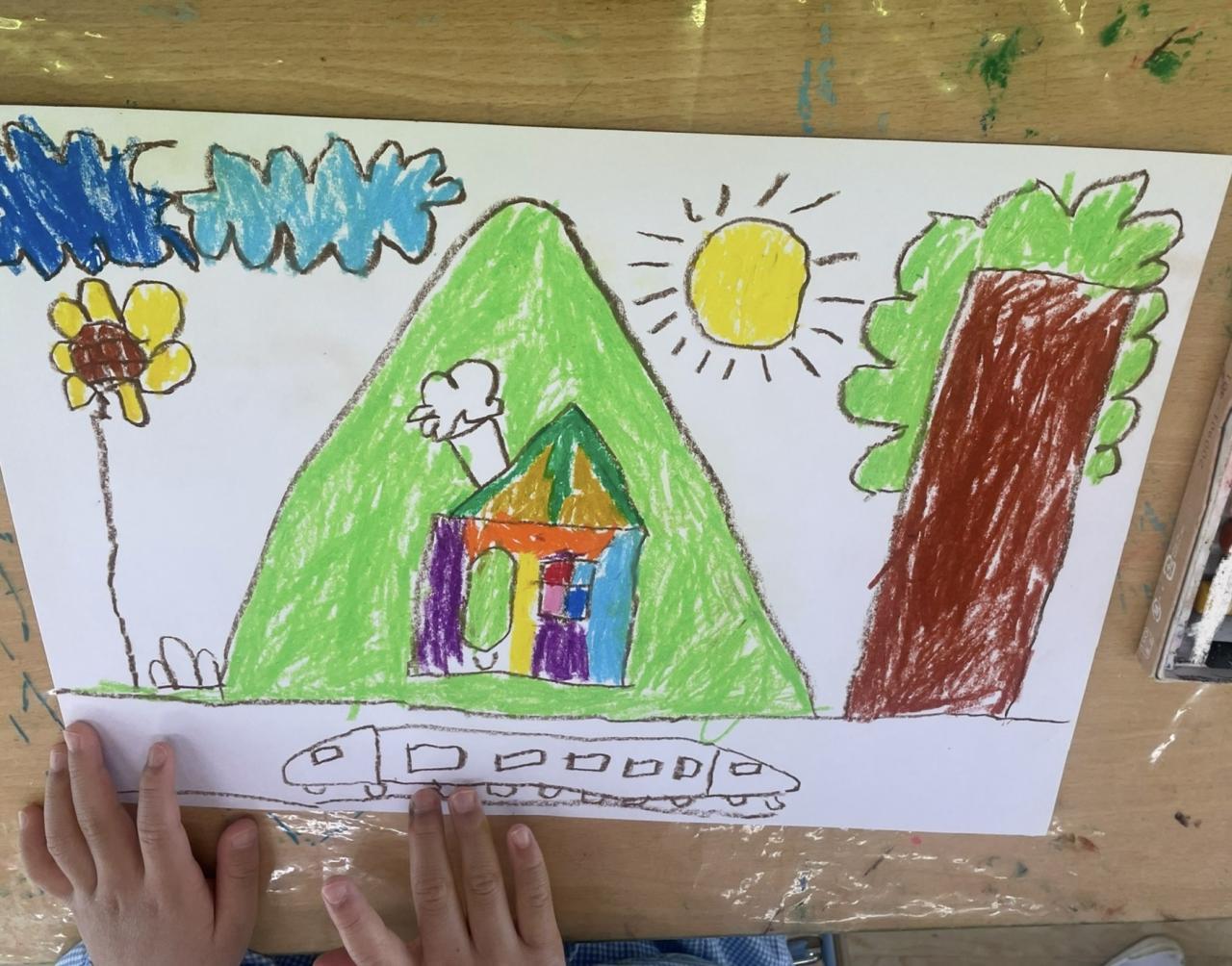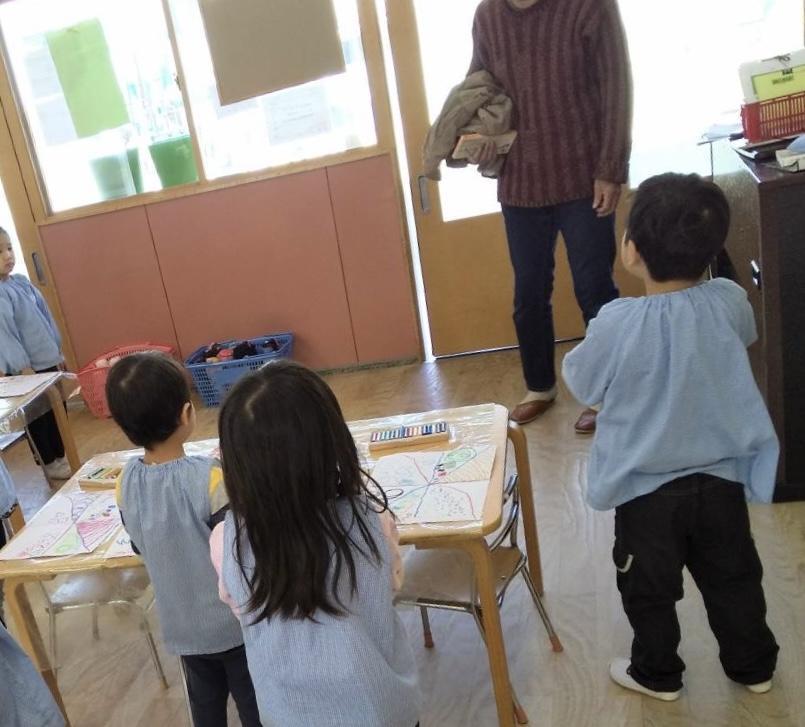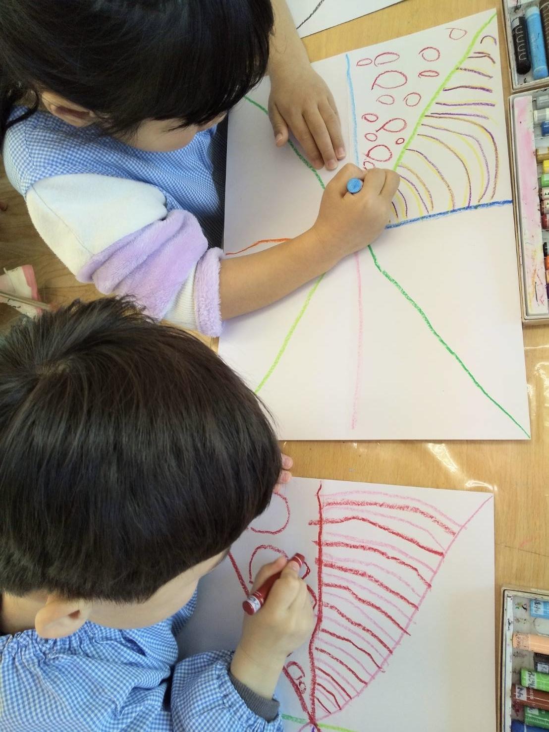 今日、うめ、たけ、きく組の絵画教室がありました。