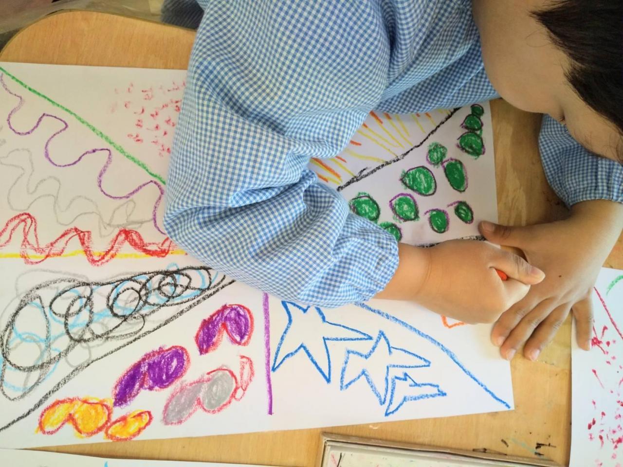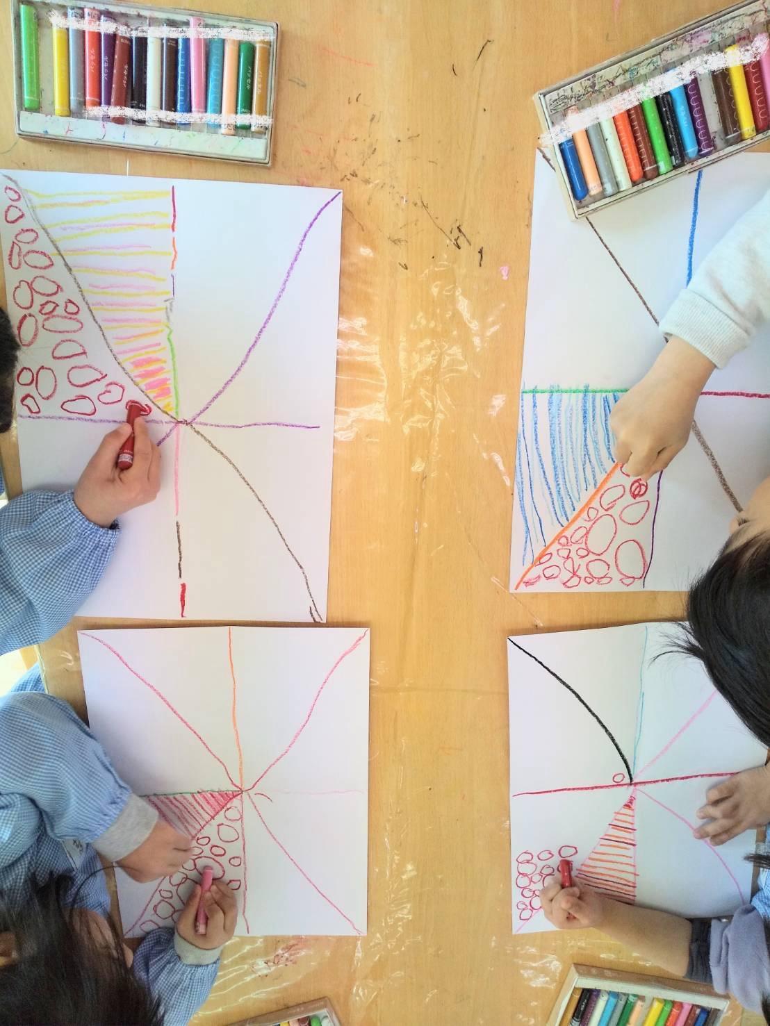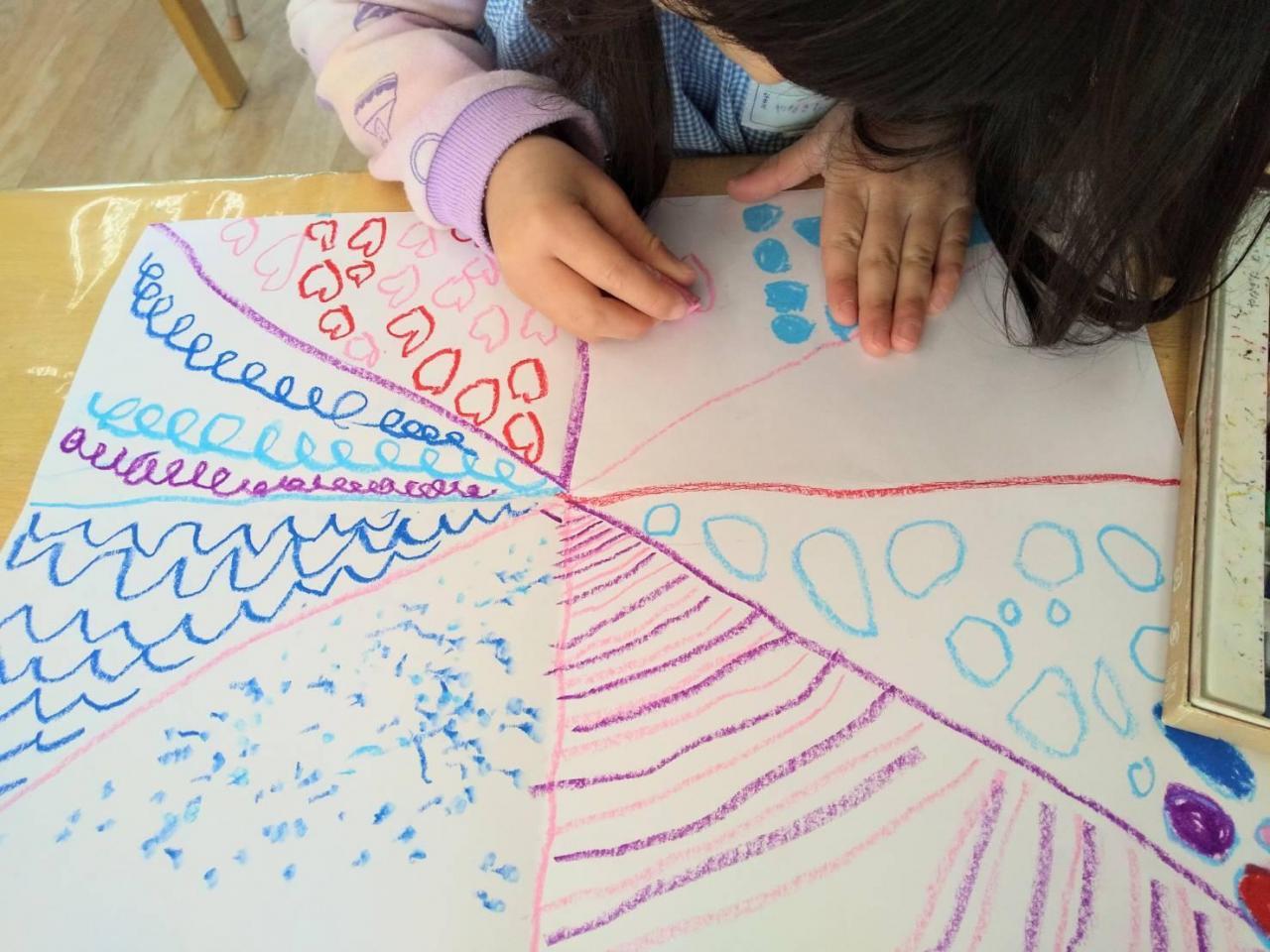 同じ色にならないよう色を塗り、その模様を楽しみ