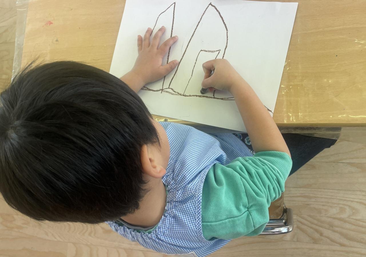 きく組は、茶色で先生のおっしゃるものを一つずつ
