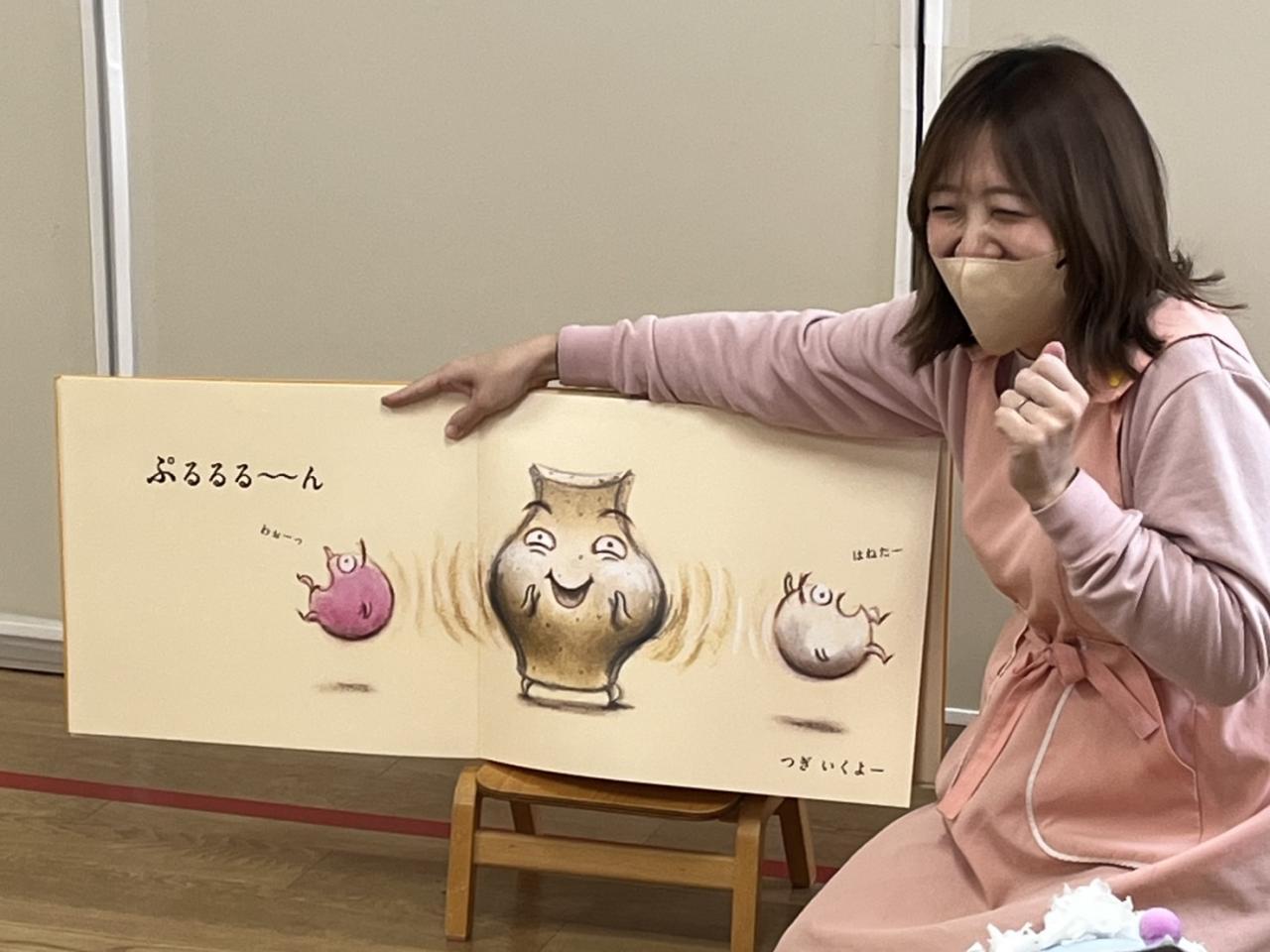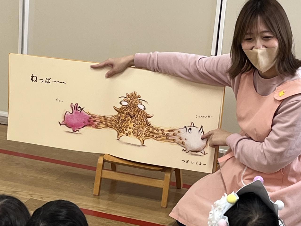 読み聞かせは、大型絵本「おしくらまんじゅう」