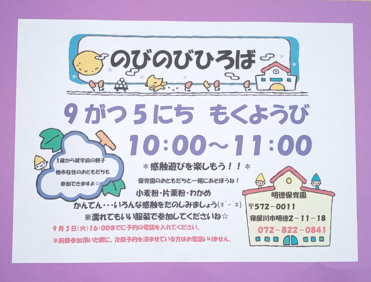 9月の「のびのびひろば」は、『感触遊びを楽しもう!』です。
