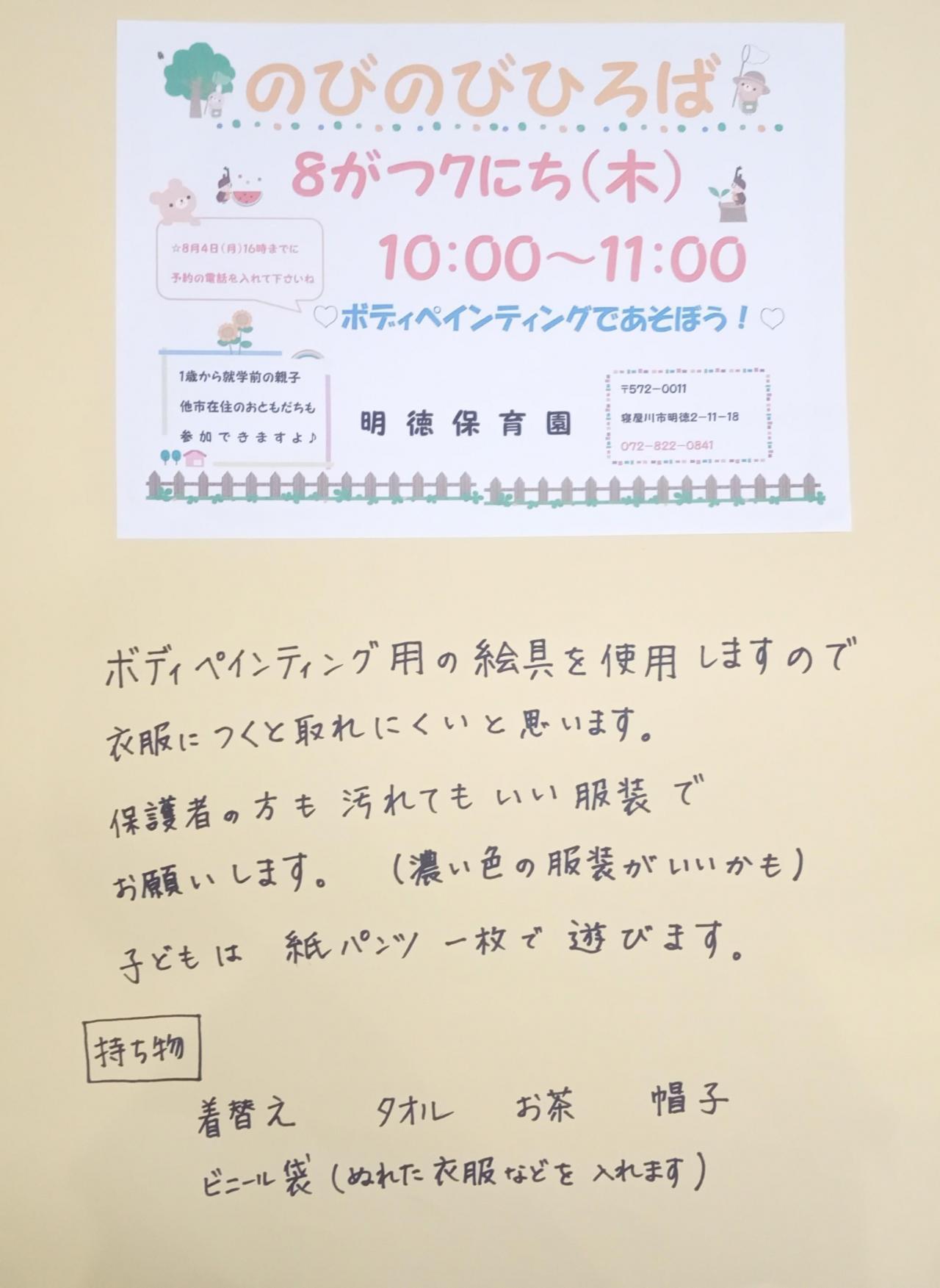 8月の「のびのびひろば」は、『💛ボディペインティングであそぼう!💛』です。