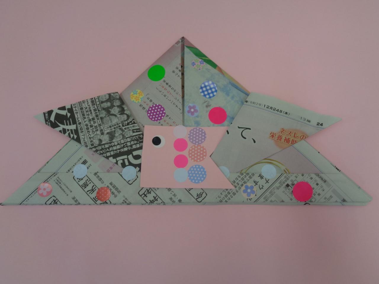 こんにちは。この2日間は、夏のような気候でした。水分補給をしっかりと摂り、体調に気を付けましょう。4月12日、13日は出口ふれあい公園で青空保育をしました。新聞紙で折る「かぶと」や画用紙でこいのぼりを作りました。