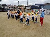 フープとボールを使うゲーム遊びもしました。ルールを守りながら楽しんでいました。
