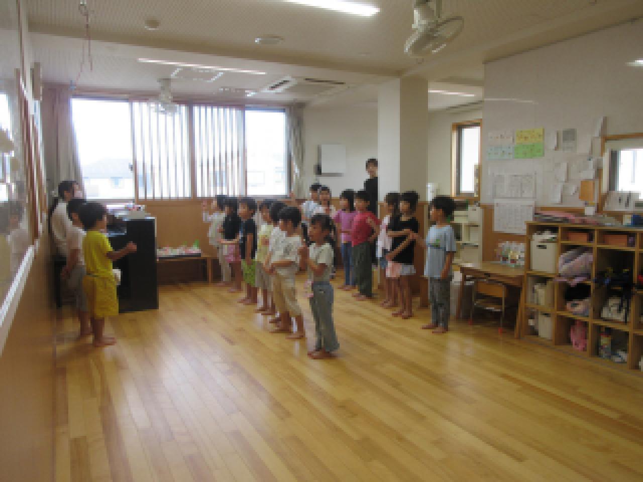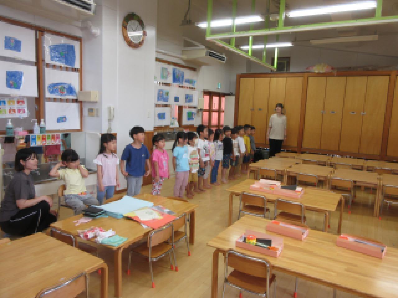 3歳・5歳クラスは各クラスで朝の活動をした後、