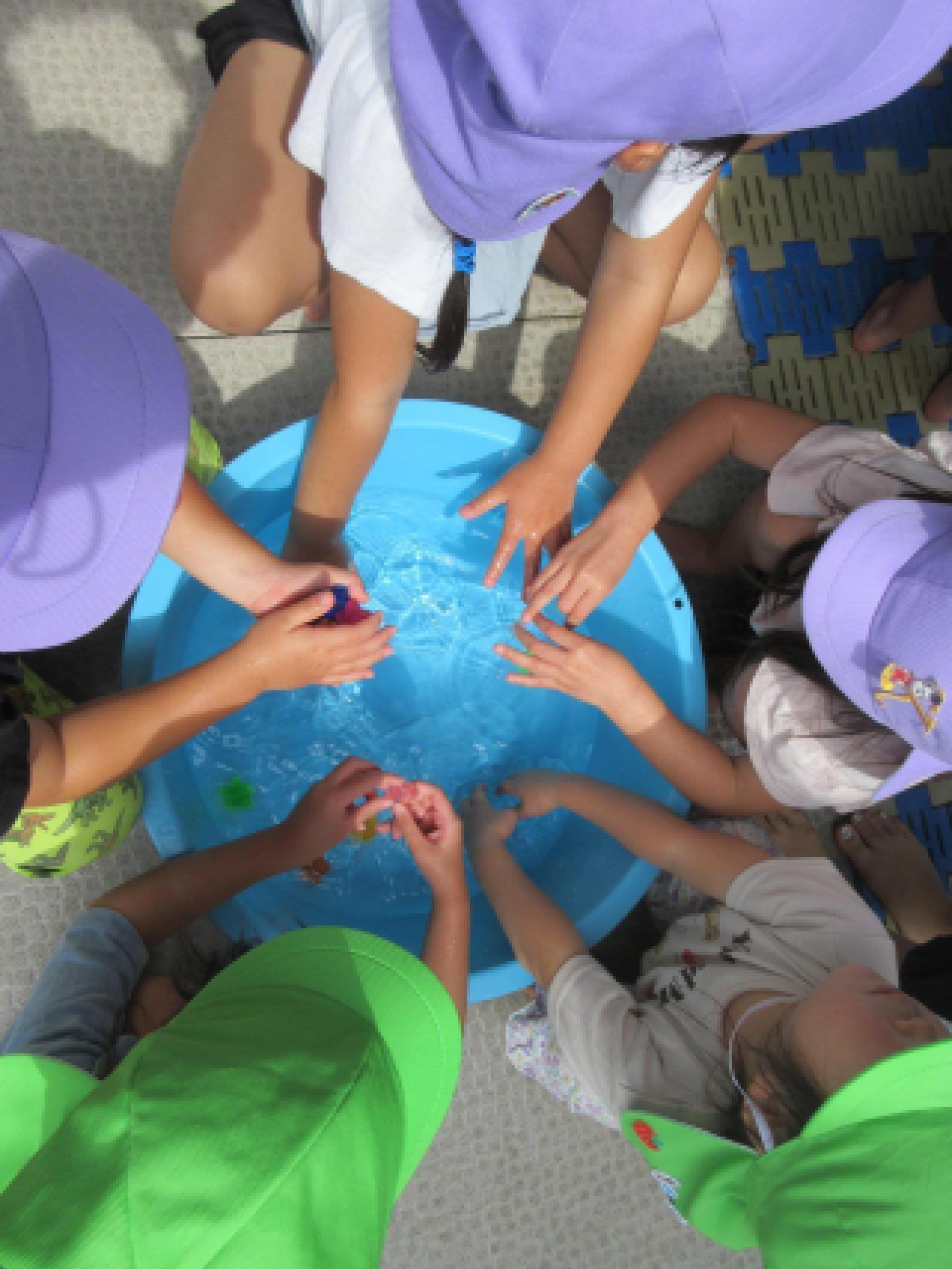 氷を溶かしていると水がとても冷たくなり「つめた~い」と