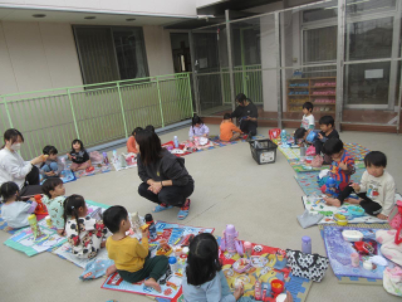 かけっこをしました。バナナ鬼や大縄跳びをして楽しみました。