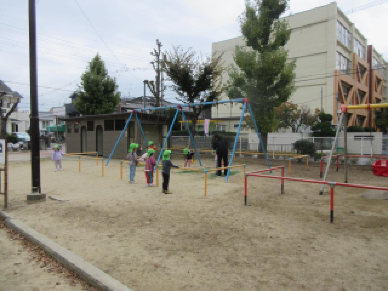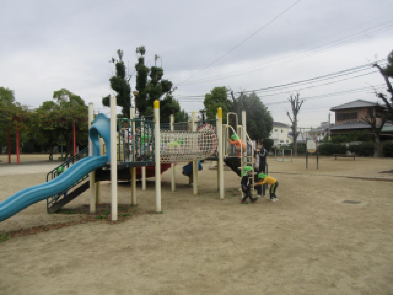 一斉に大型遊具へ嬉しそうに走り出した子どもたちです。