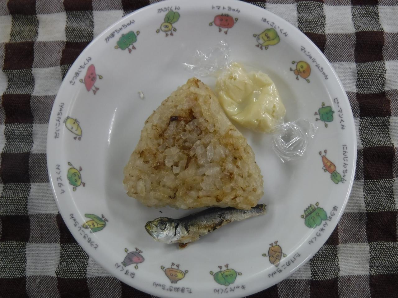 普通おやつ2歳児量:焼きおかかおにぎり キャンデーチーズ 咀嚼:炒り煮干し