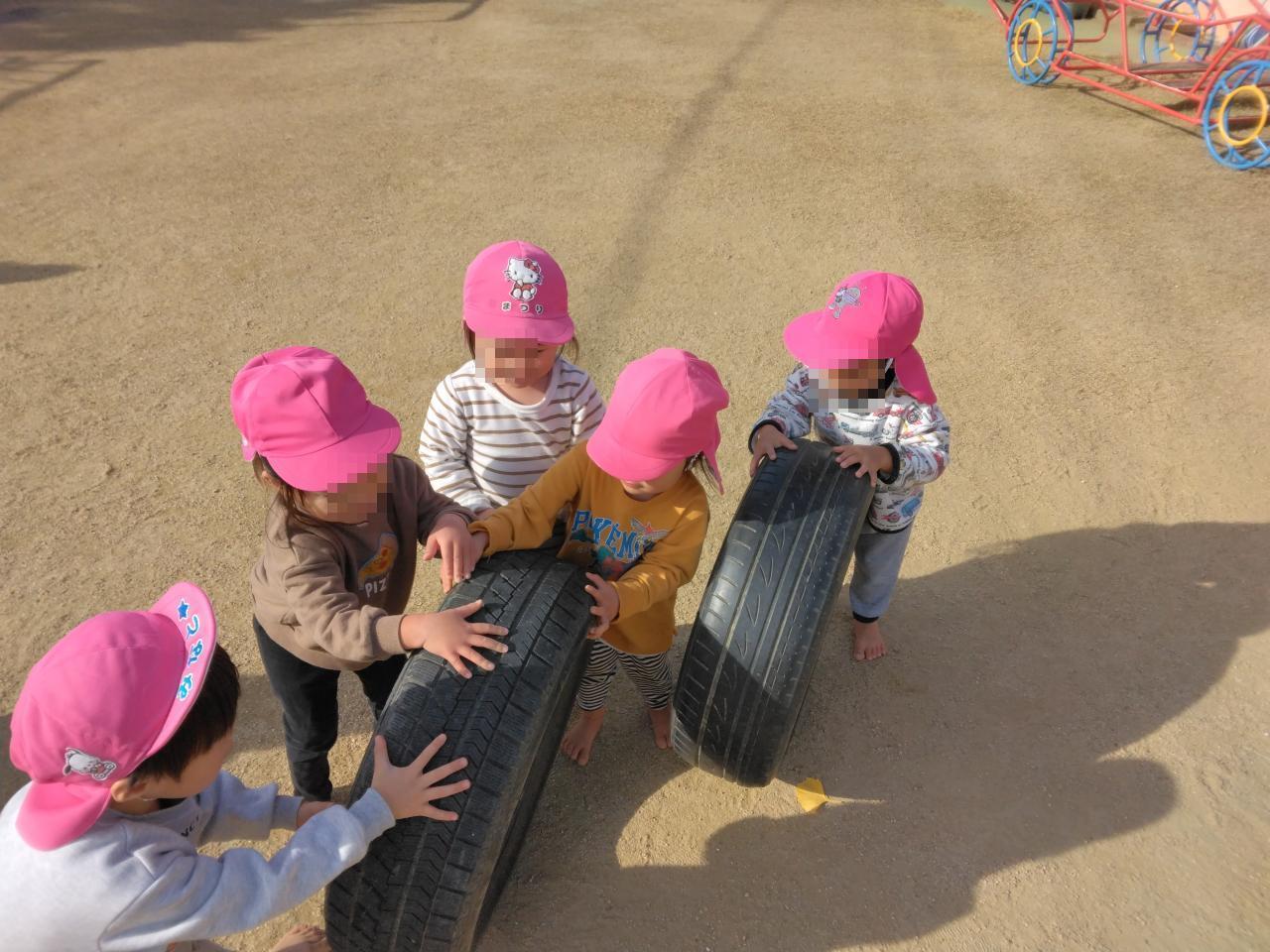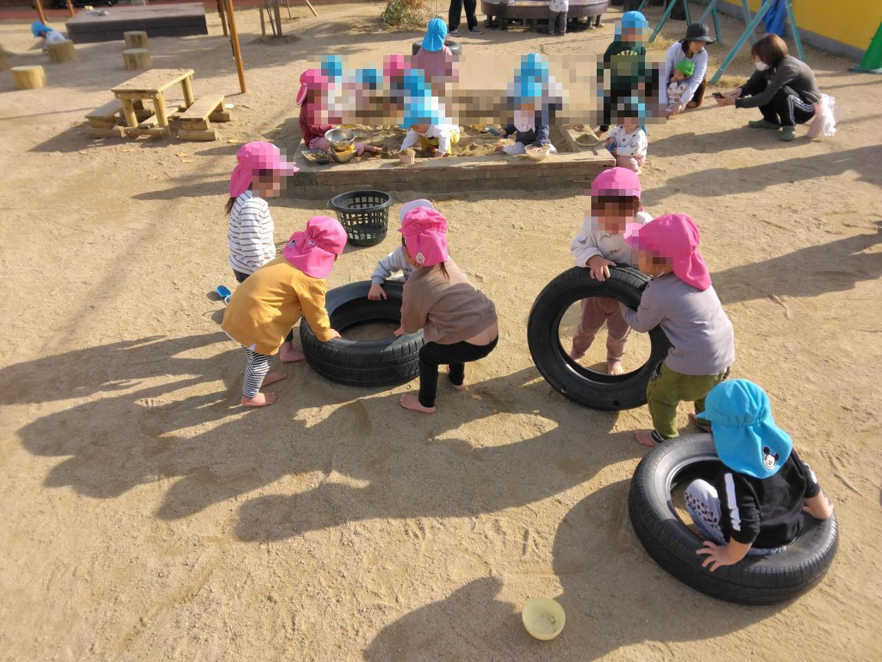 今日はポカポカとお日様の暖かさを感じながら園庭で遊びました。