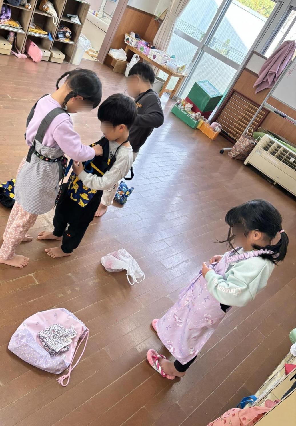 ・靴下、上着は保護者が管理してください。保護者の靴袋の用意をお願いします。保育を申し込まれている方は着替え一式、水筒の持参をお願いします。(カバンは要りません)
