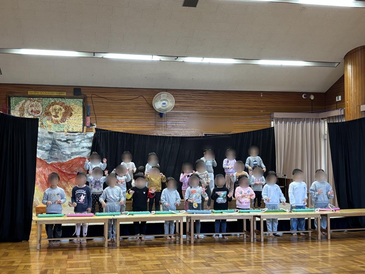 合奏、合唱、おむすび🍙ころりんの劇の舞台練習をしました。園長先生、山元先生、久美子先生に見守られながら「緊張した〜」という子もいました。当日の舞台は、もっと緊張してしまうかもしれません。あたたかいお気持ちで見てくだされば嬉しいです。