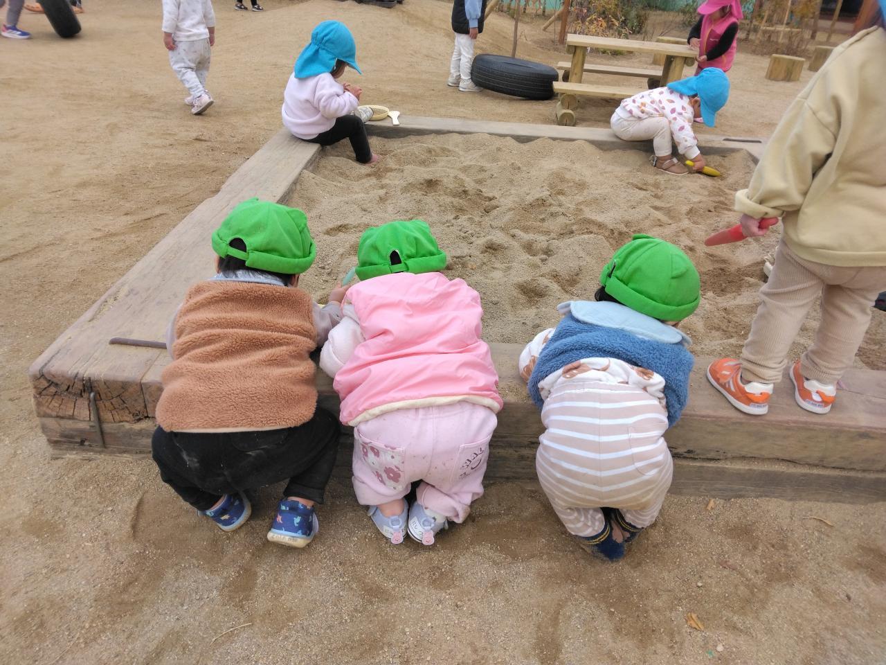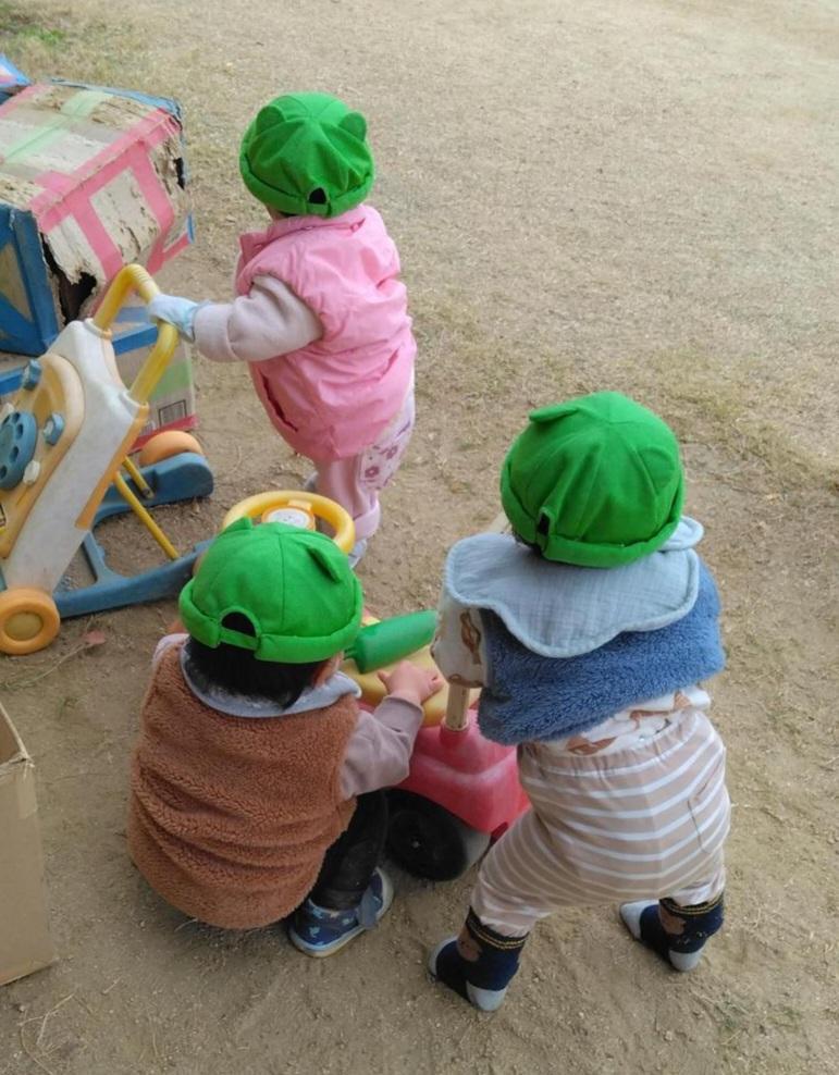 今日は園庭でたっぷり遊び、お部屋に帰るよ~と言うと、もっと遊びたいとアピールしていた子供達です。ダイナミックに遊べるようになってきましたよ。