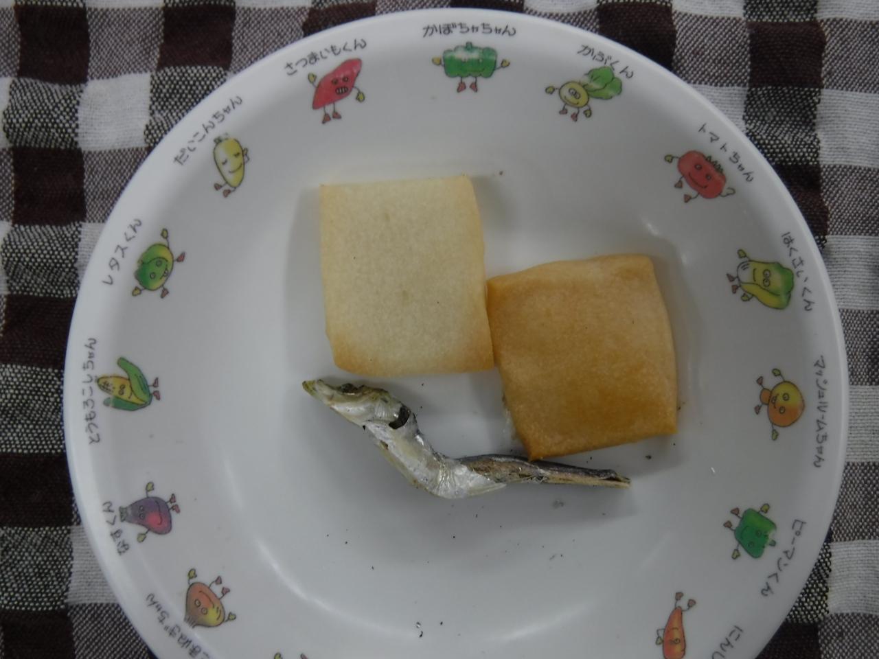 普通おやつ2歳児量:米粉せんべい 咀嚼:炒り煮干し