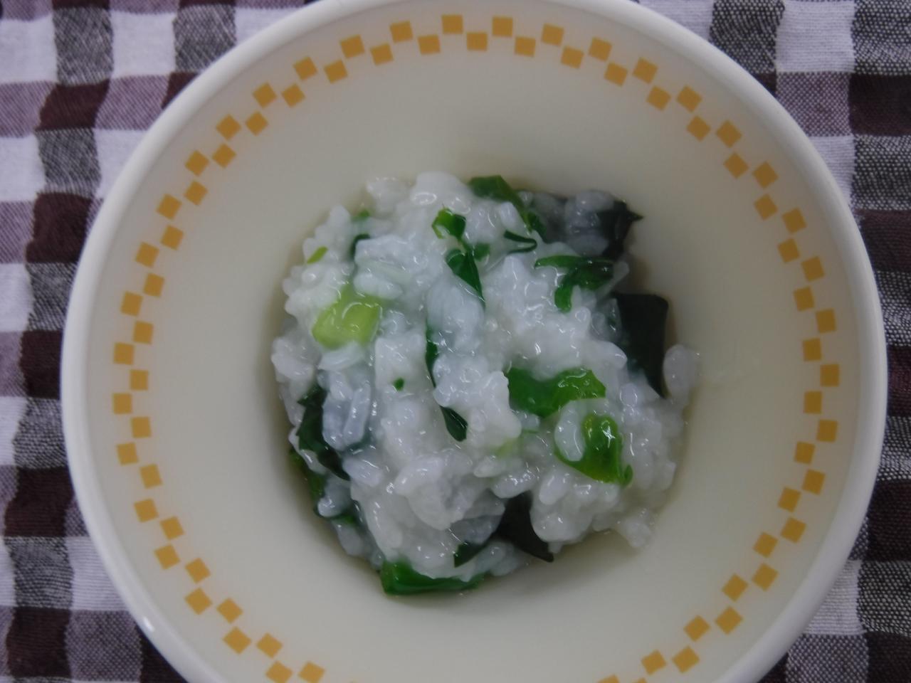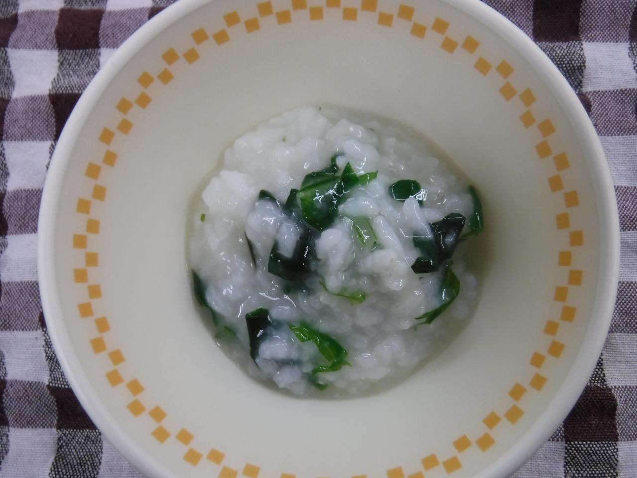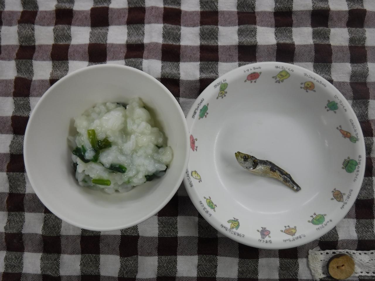 おやつは「七草風粥」。消化しやすいお粥は、あたたかくてほっこりする献立です。