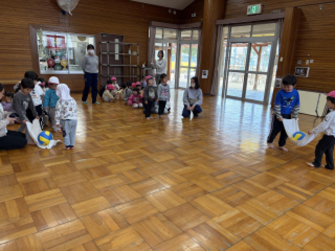 タオルを弛ませて、落とさないようにと工夫する姿も^_^「タオルはピーンと張ってね」と保育士は声をかけたりしつつ〜^_^応援しました。