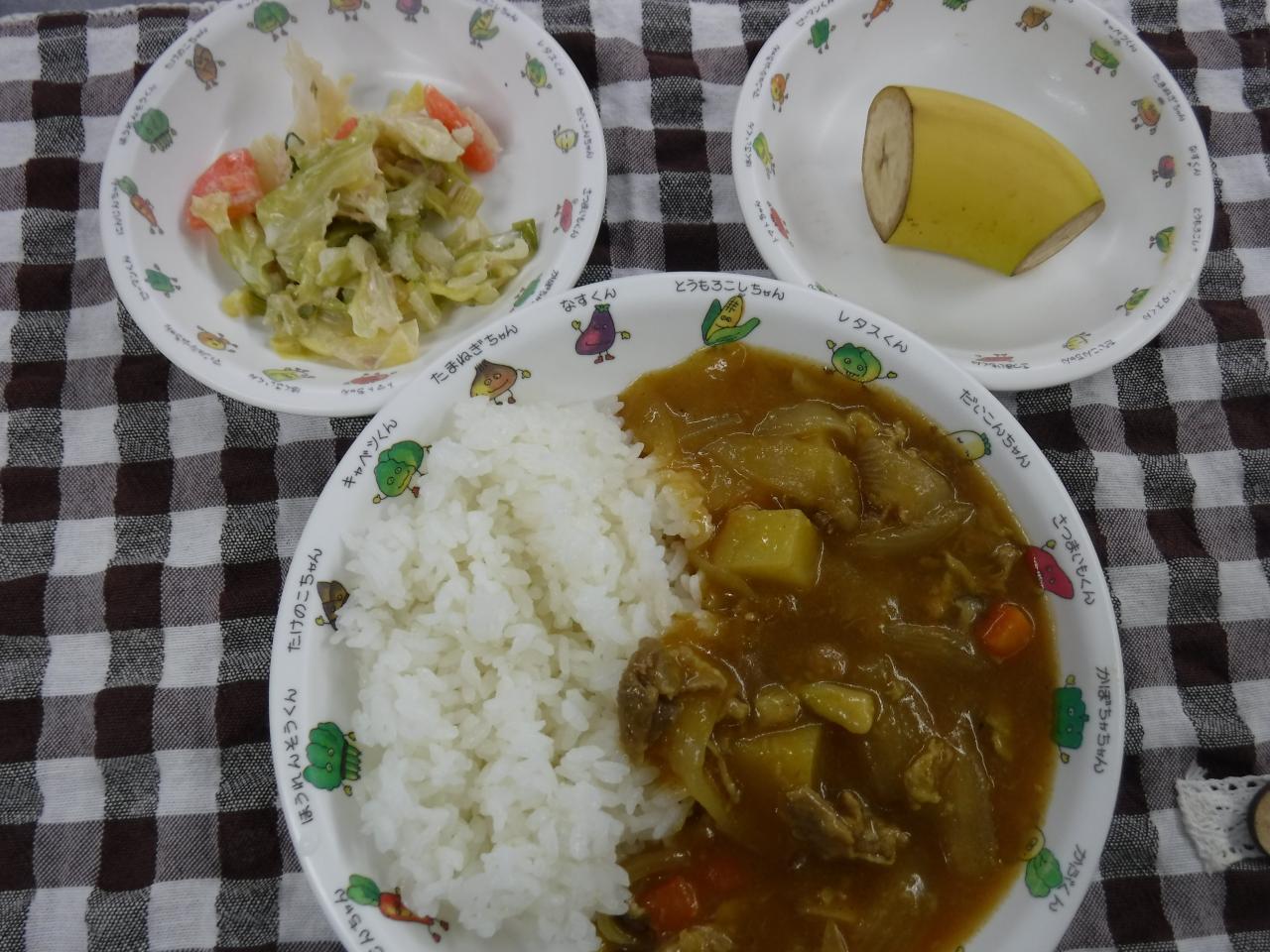 普通給食2歳児量:手作りカレーライス 春キャベツのサラダ バナナ