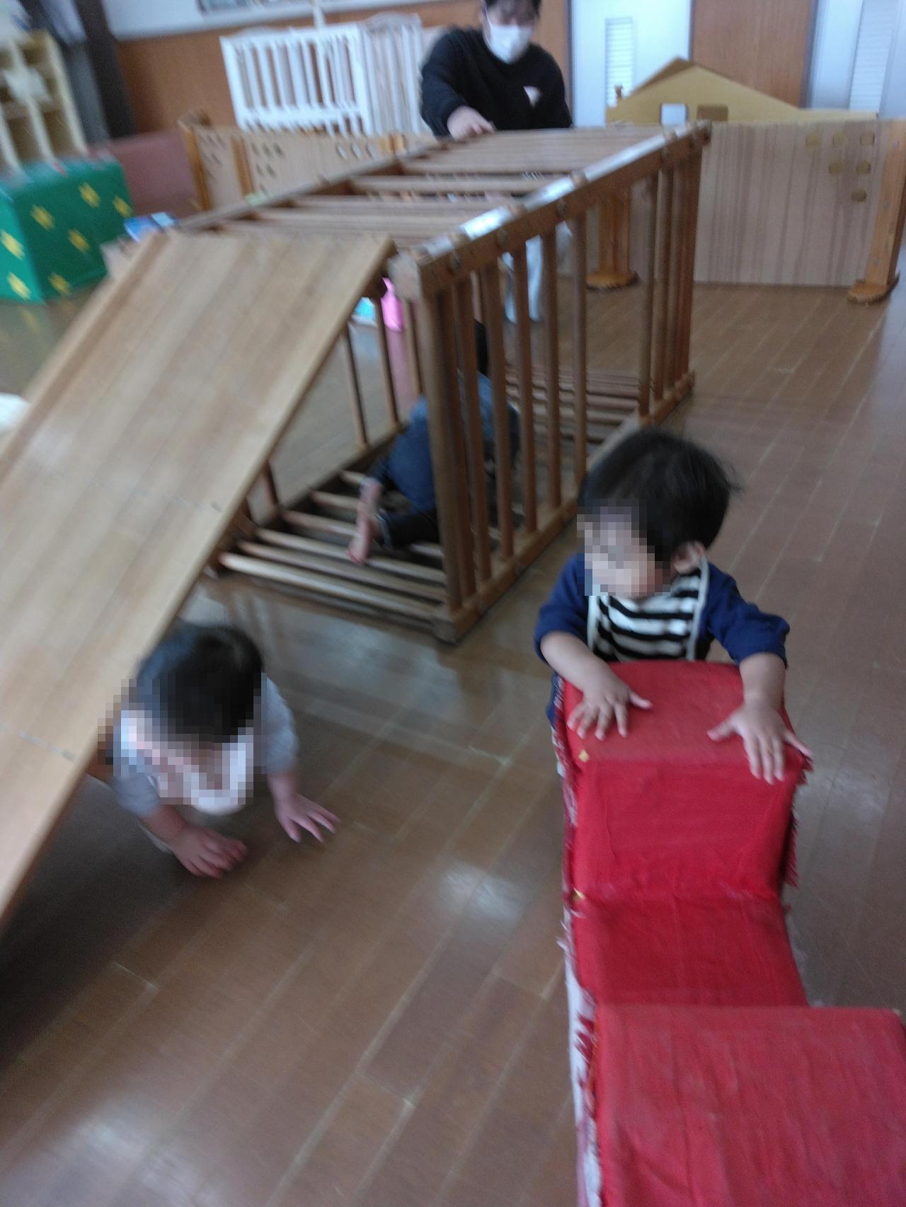 ねらい。さくらの部屋で遊具を出して、好きな遊びを見つけ、運動遊びを楽しむ。