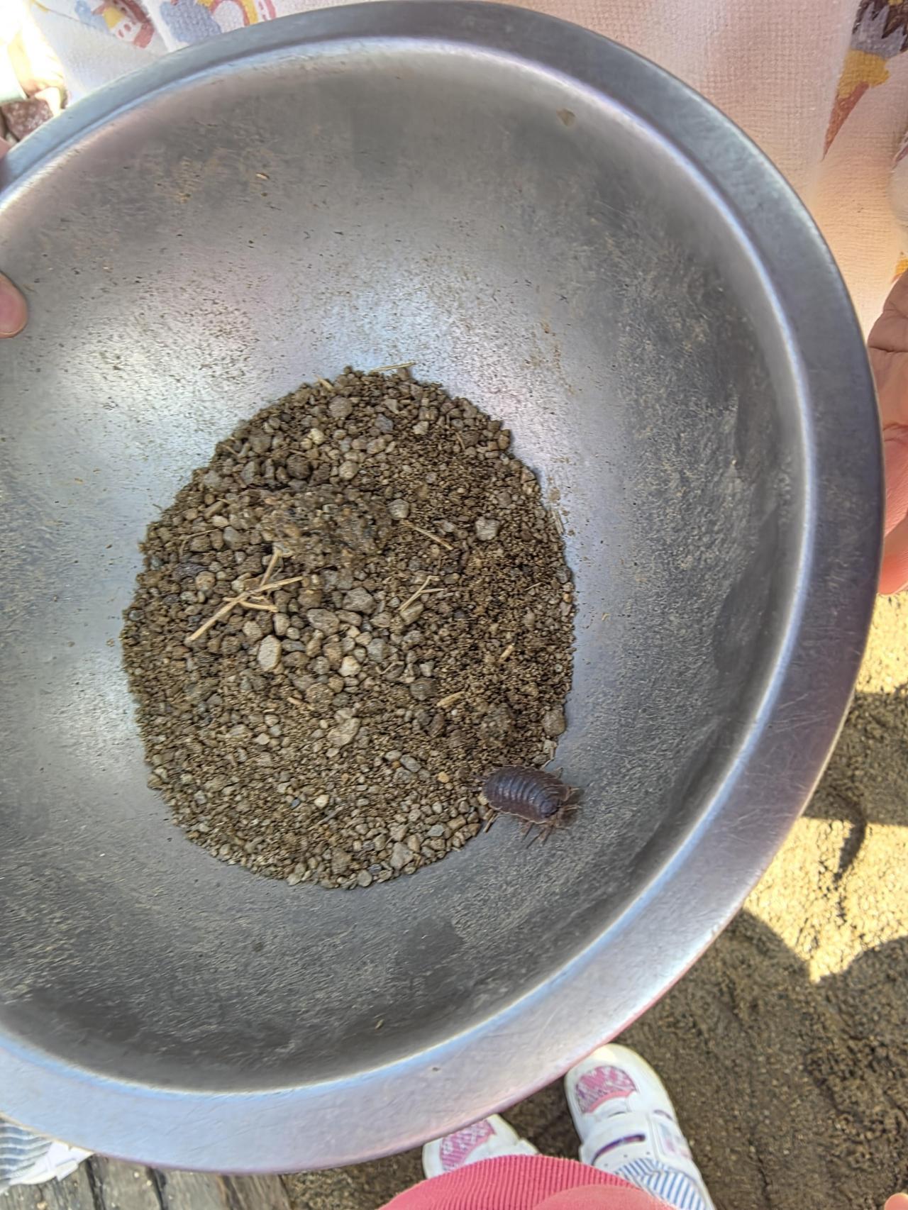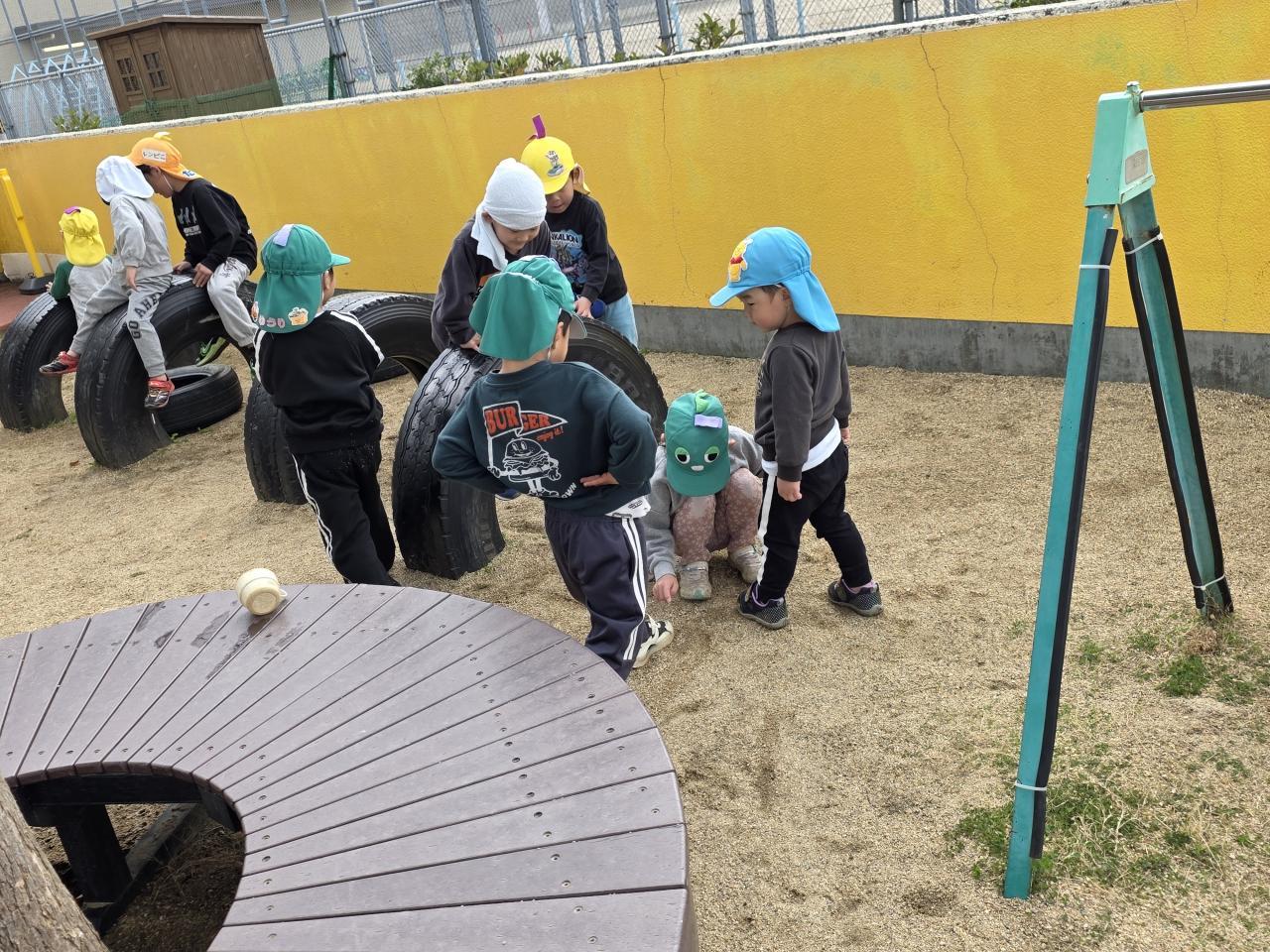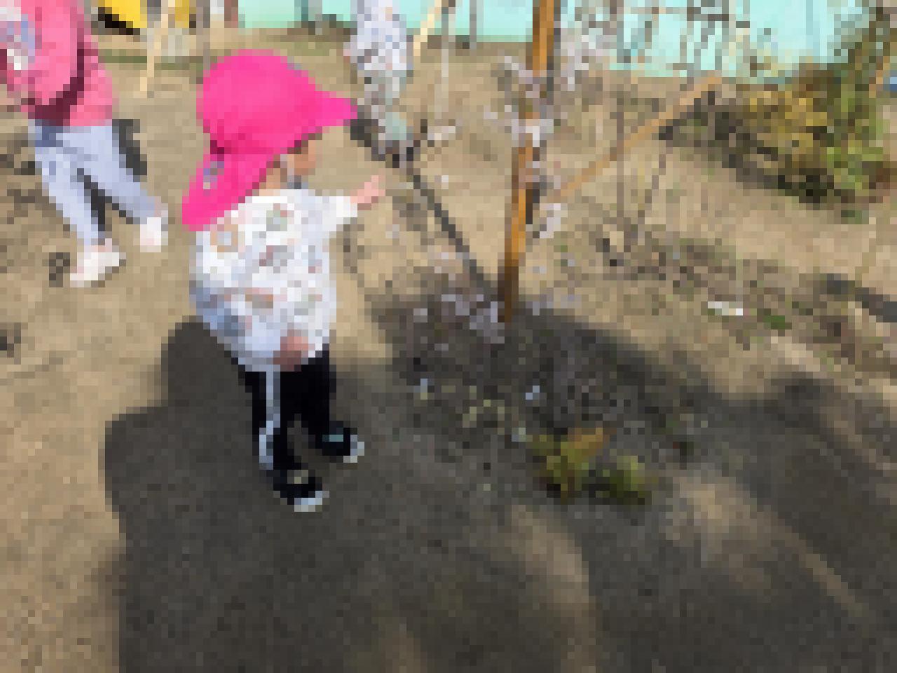園庭に出ると春探しをする子がいました。