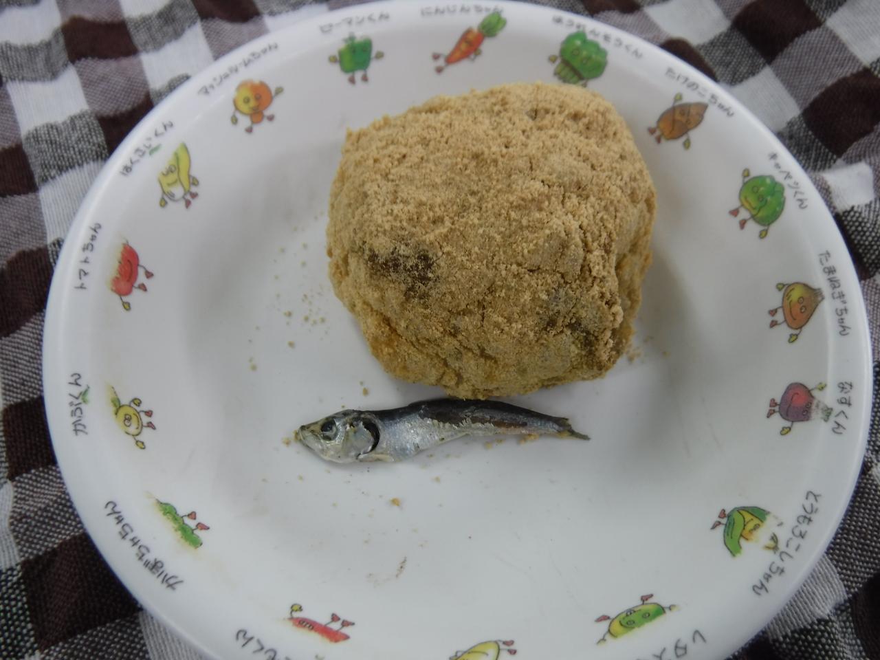 普通おやつ2歳児量:ぼたもち 咀嚼:炒り煮干し