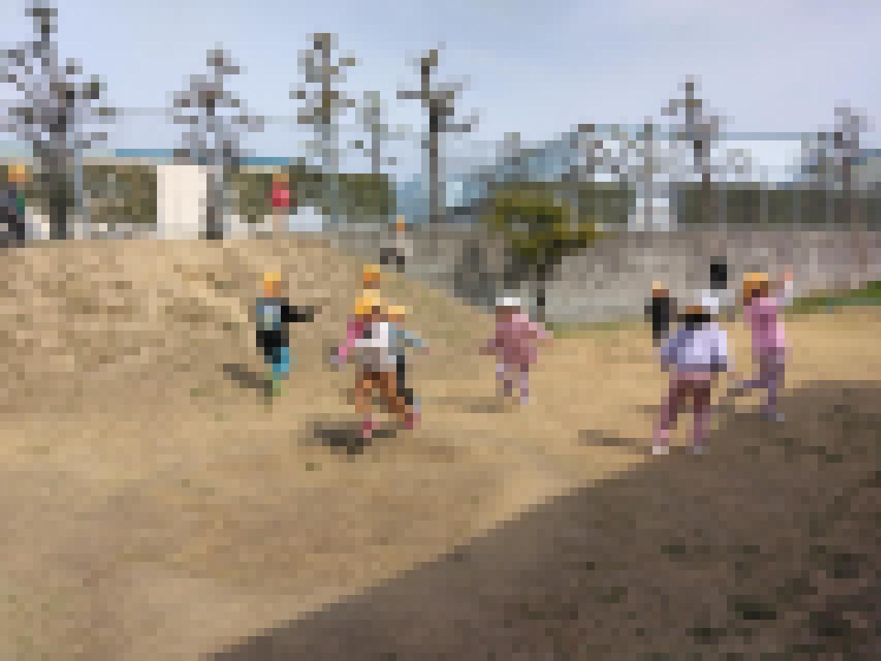 雨が降る前だったので、裏庭へ行き、こおり鬼、しっぽとり、いろ鬼をしようとお友達と元気いっぱい走り回り、盛り上がっていました。