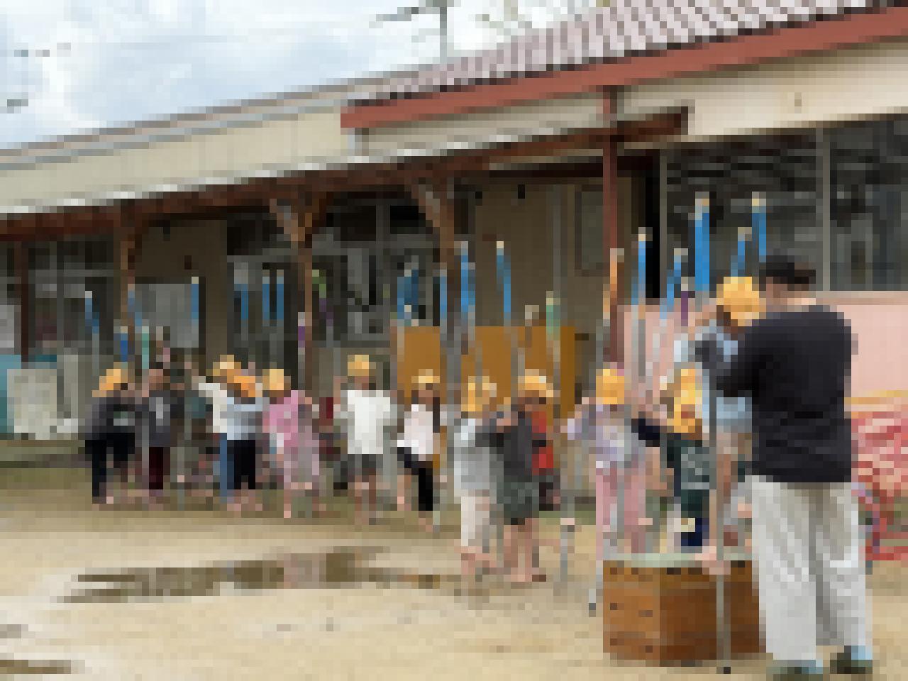新すいか組や新めろん組に見守られながらの練習でした。緊張した表情でしたが、共に遊んだお友だちからの「かっこいいな」という眼差しをうけ、嬉しそうでもありました。