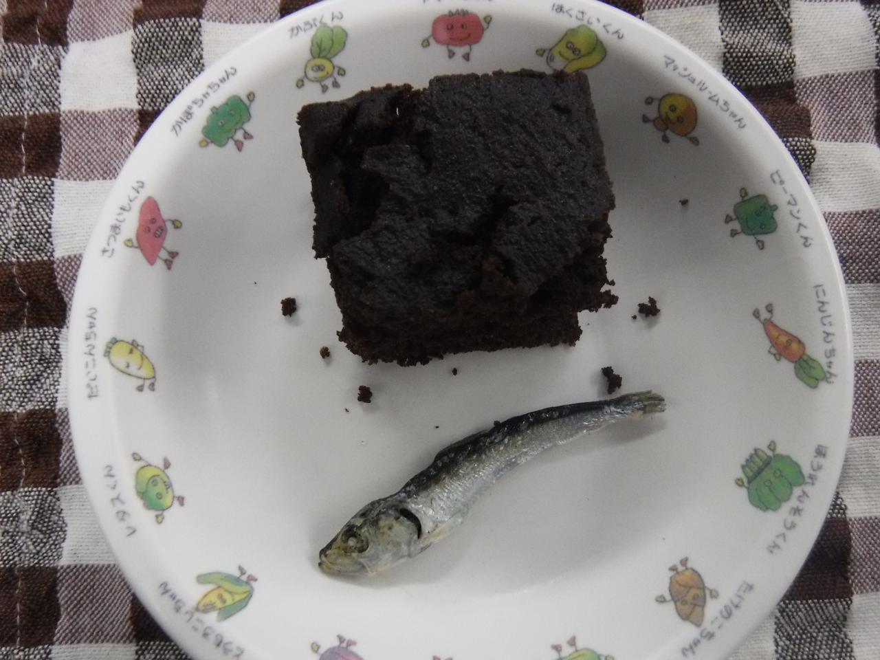 普通おやつ2歳児量:豆腐ココアブラウニー 咀嚼:炒り煮干し