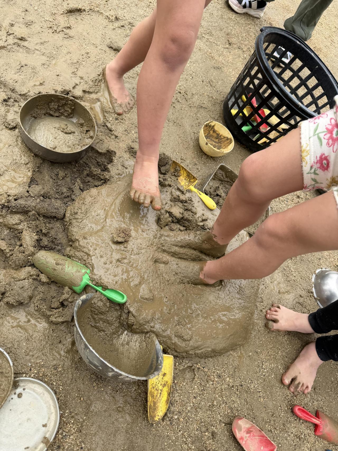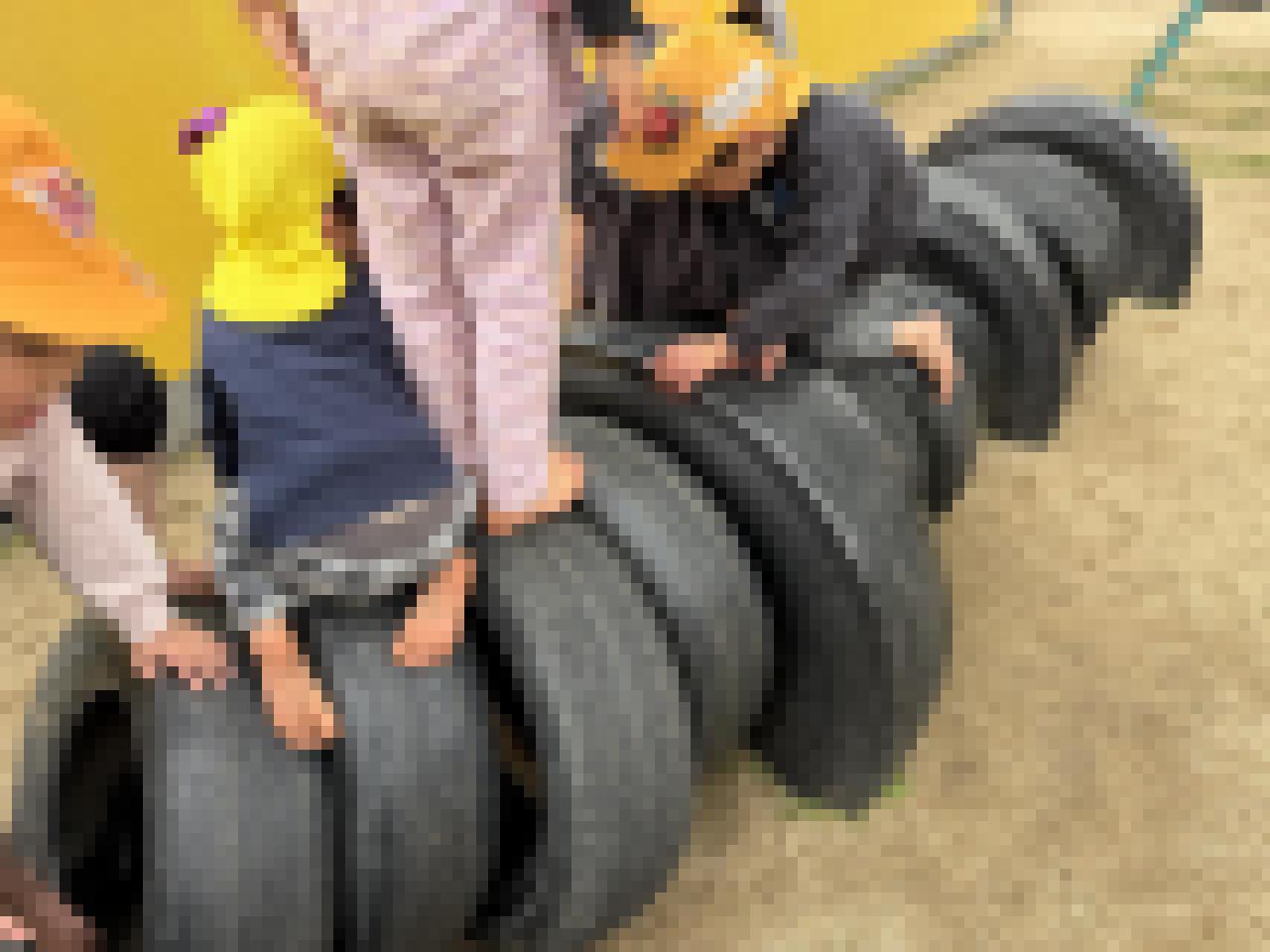 園庭遊び(泥遊び、竹馬、タイヤ渡り)