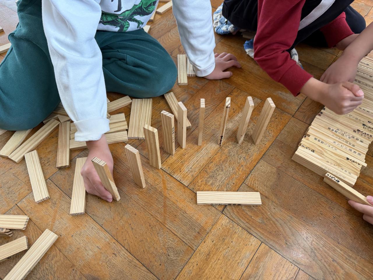 倒してしまうとまた一からやり直しで苦戦中…。お友だちと協力しながら作っていますよ^_^