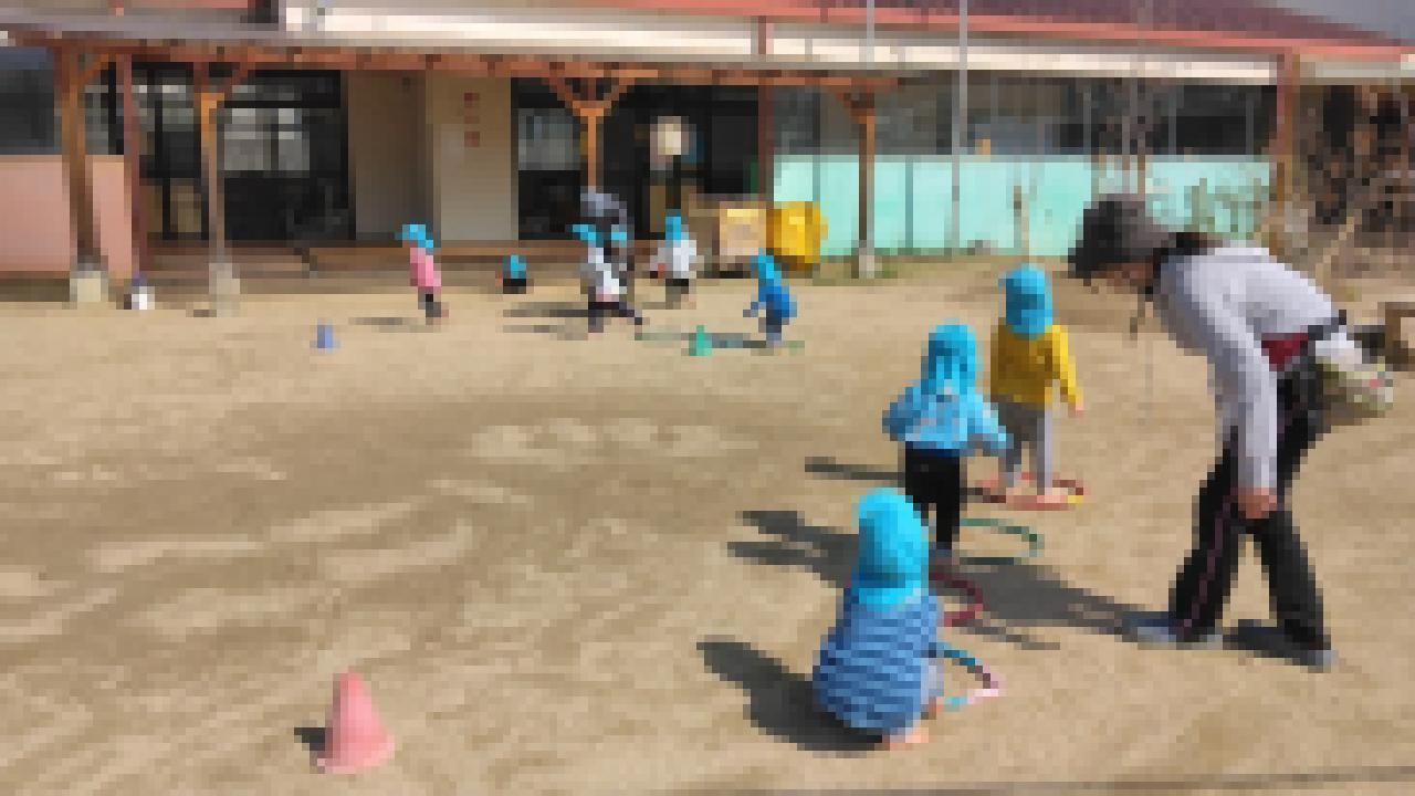 園庭散歩やかけっこ、春の自然探しをしました。たんぽぽやダンゴムシ、てんとう虫を見つけ、かけっこではコーンの周りを走り、たくさん身体を動かして遊びました。