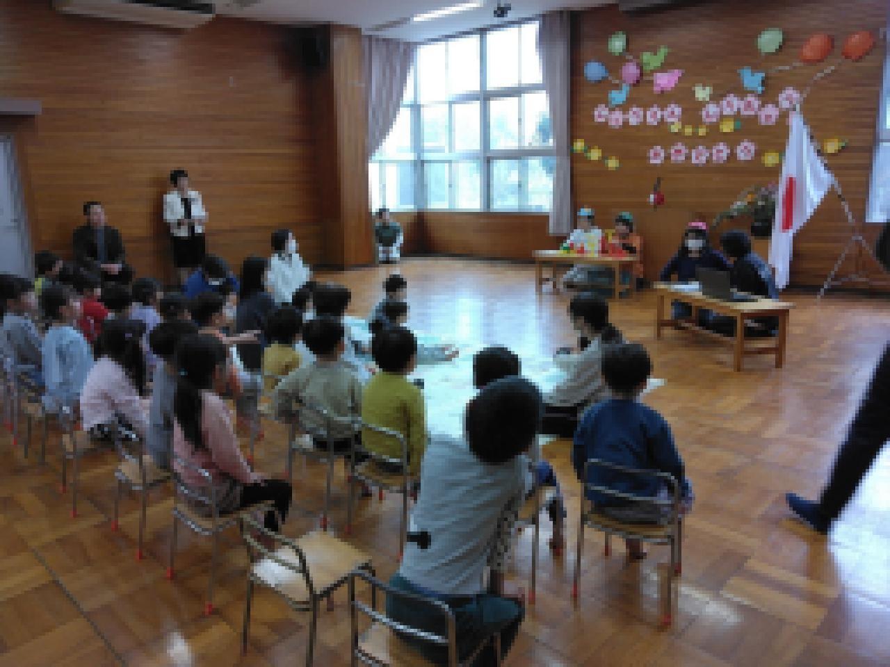 新しくお友だちを迎えました。みんなは、1つ進級し・ぶどう組・めろん組・すいか組になりましたね。