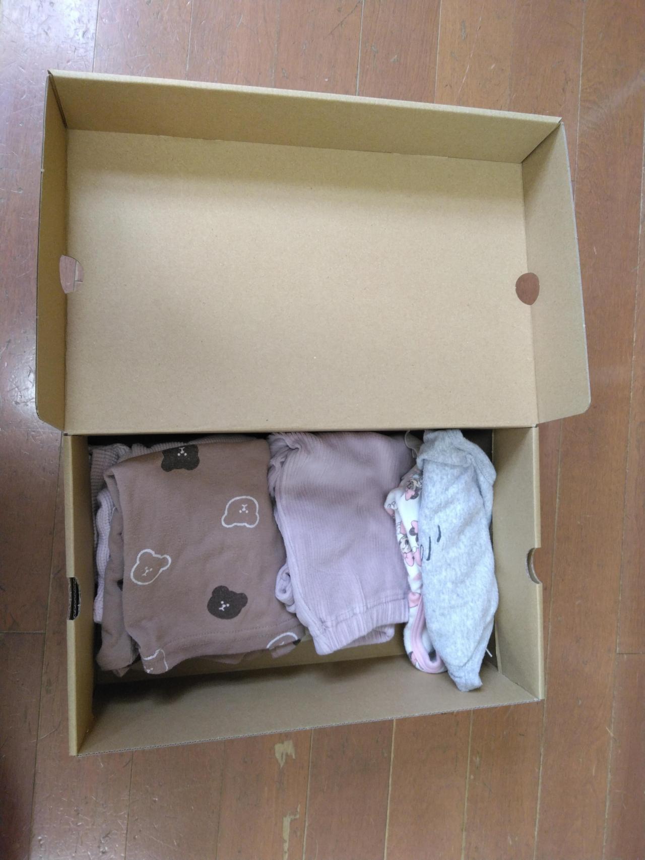 エコバックに入れて毎日持ち歩いていた服を、箱に置いておきます。