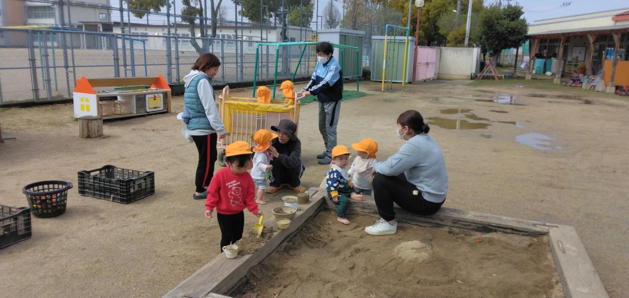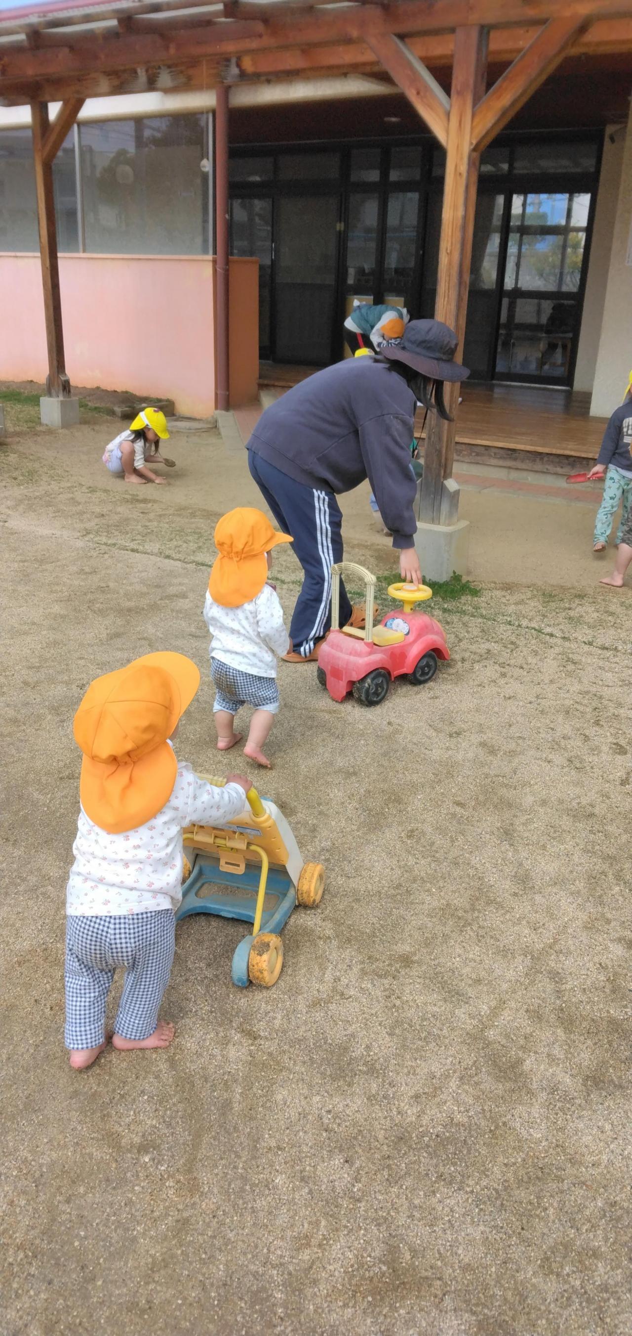新しいお友だちは、お家の方から離れて初めての保育園でした。7人のお友だちが増え、11人になり、賑やかになりましたよ。まだまだ慣れず、抱っこや、バギーに乗って遊びましたが、少しずつ笑顔も見られ、嬉しかったです。明日からも、沢山遊んで、早く慣れてもらえるといいなぁと思っています。何かわからない事があれば、いつでもおっしゃって下さいね。