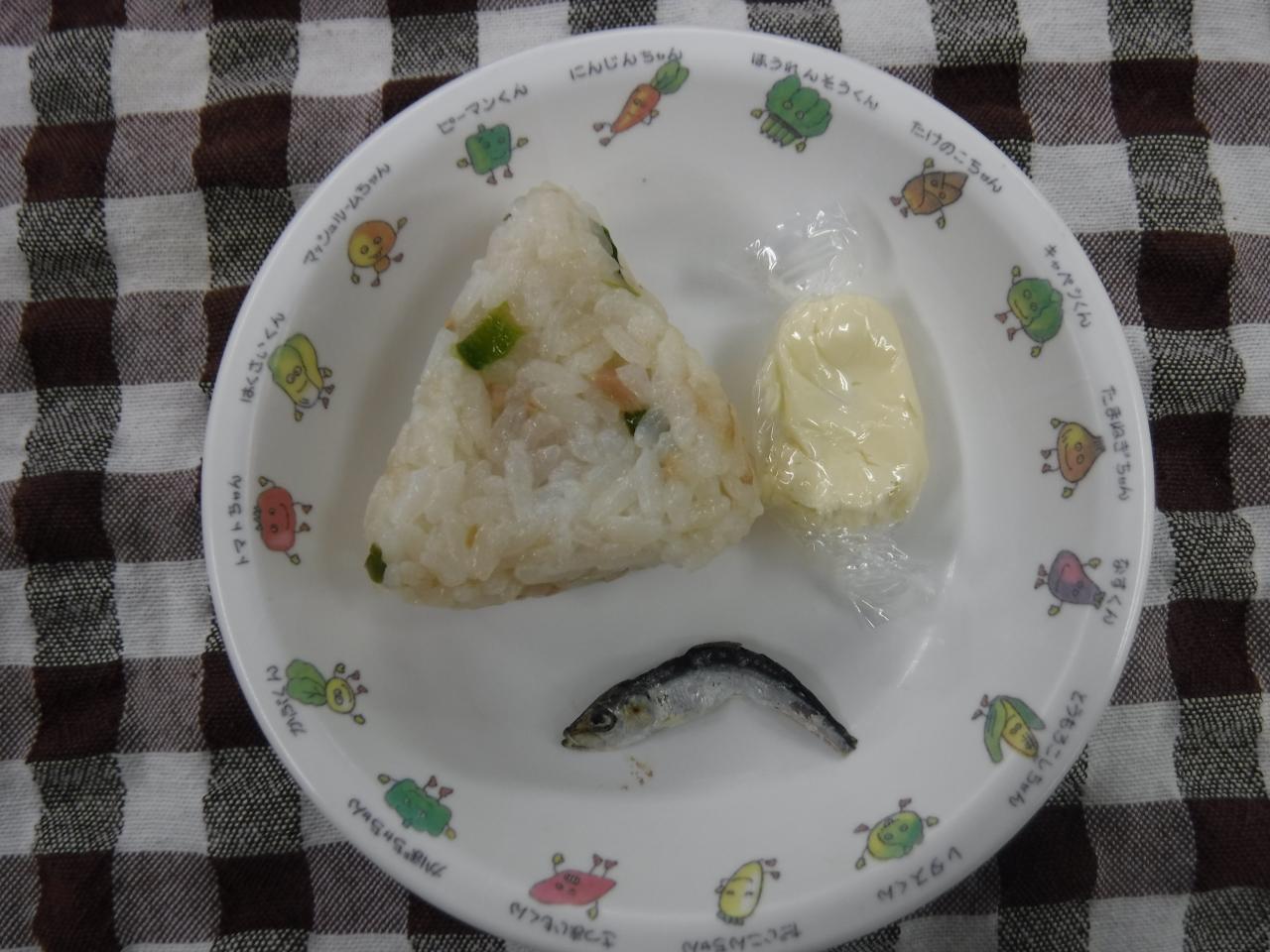 おやつ:炒り煮干し ツナご飯おにぎり キャンディチーズ