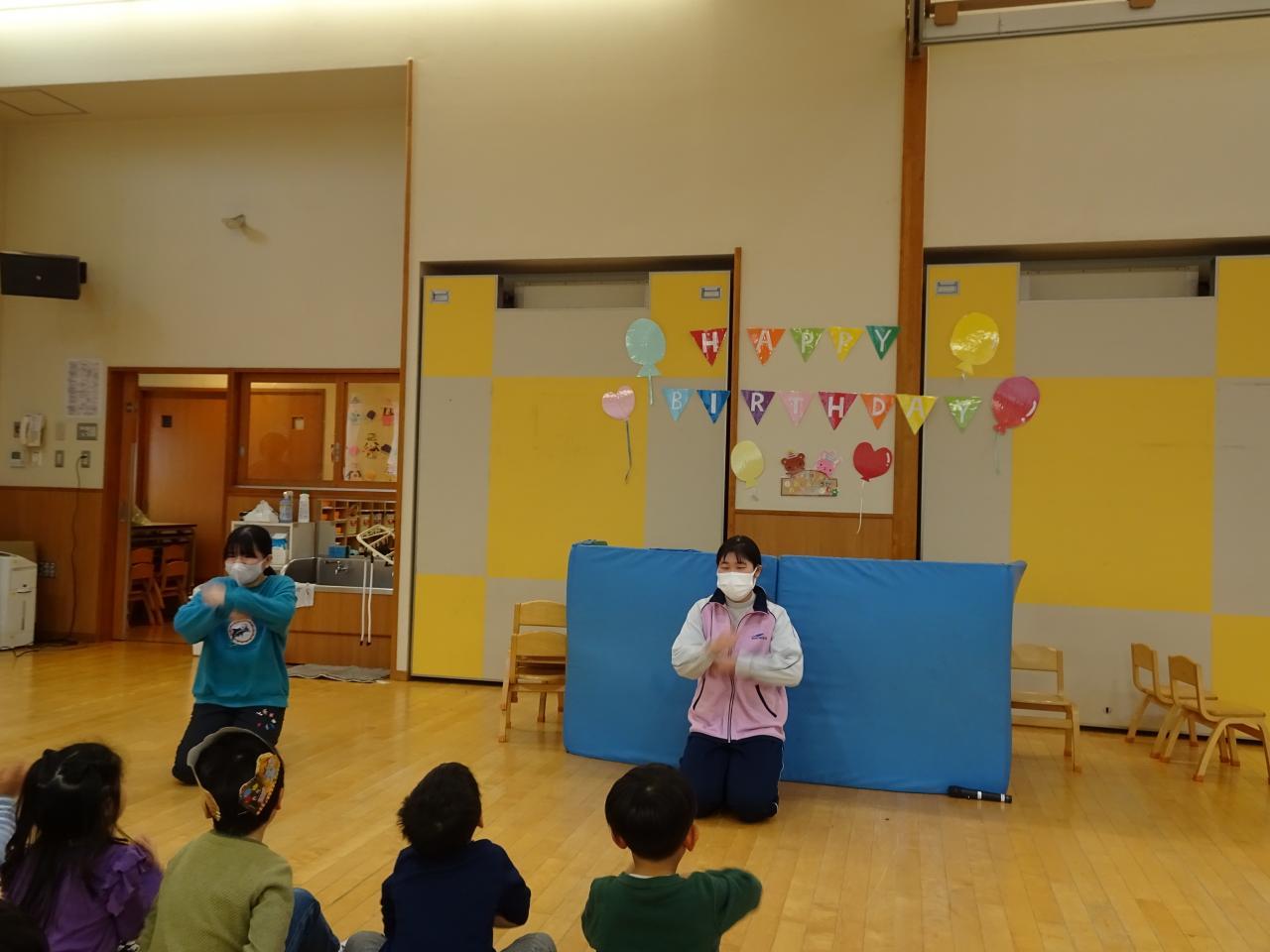 皆で「ゆきのペンキやさん」の歌をうたい、「げんこつやまのたぬきさん」の手遊びをしましたよ❗