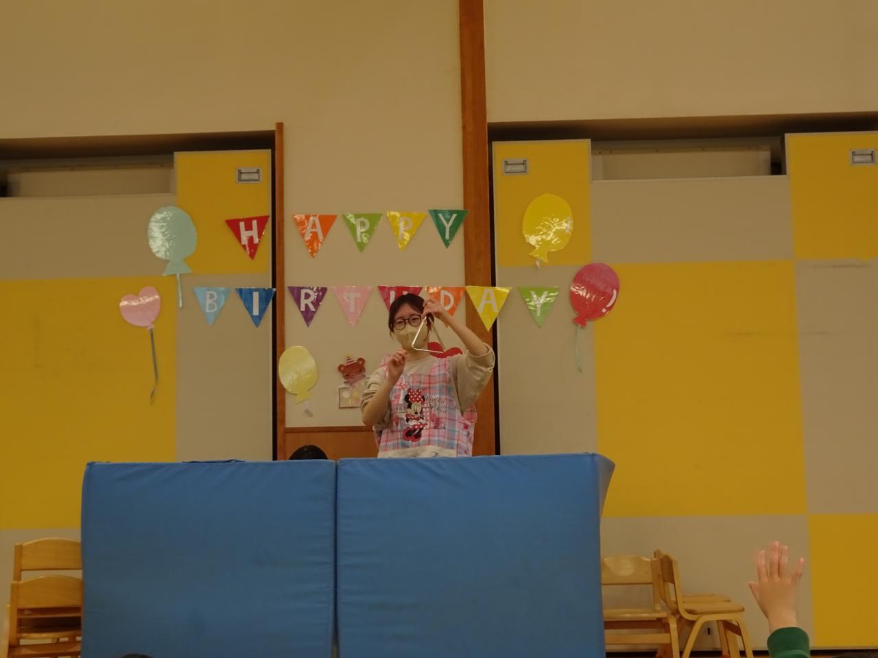 保育者が名前、年齢、好きな食べ物、好きな色など質問すると緊張している子もいましたが、元気に答えていました😄