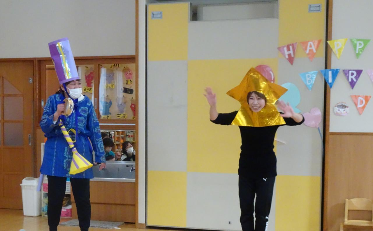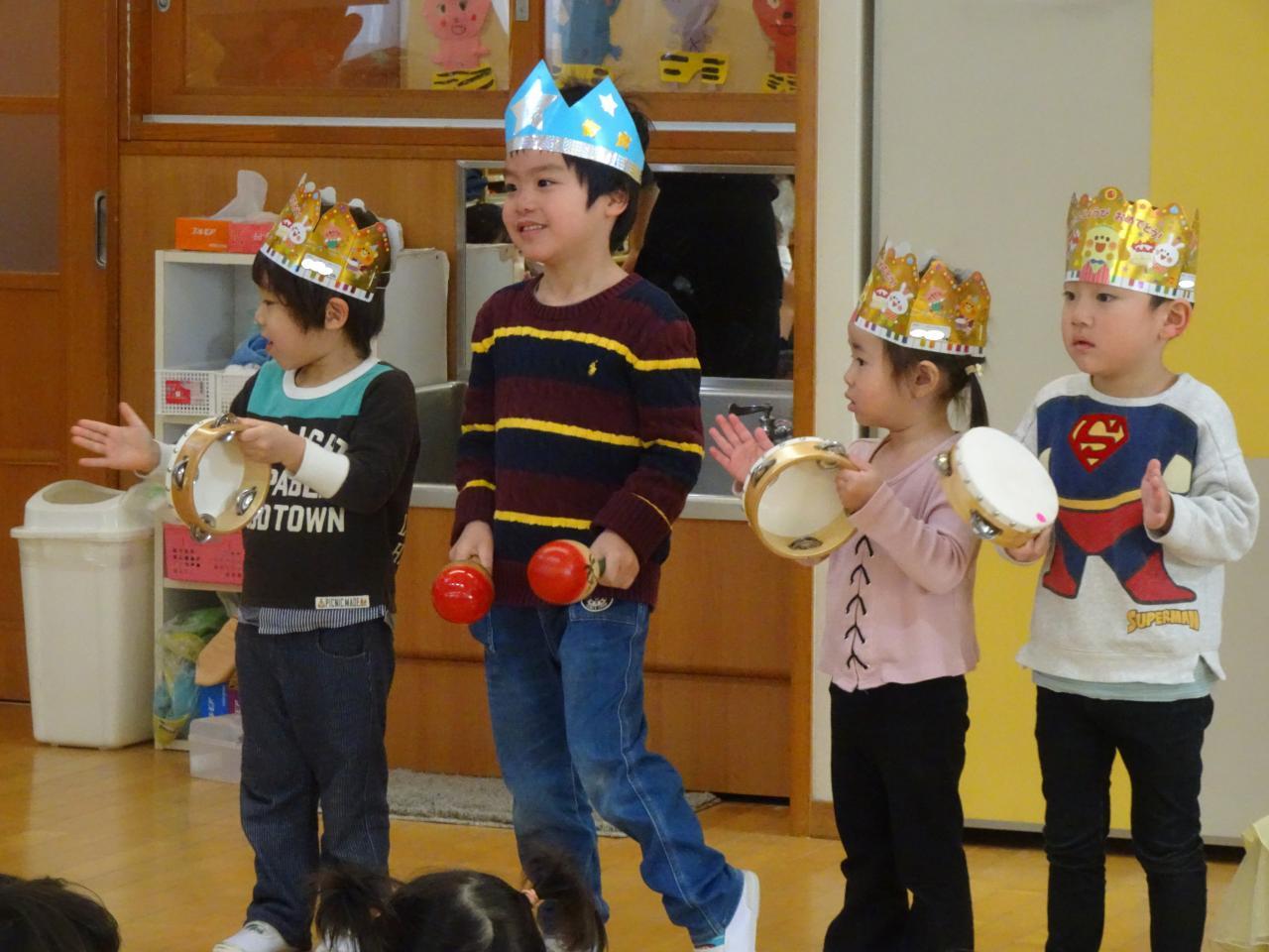 保育者からのプレゼントは「おもちゃのチャチャチャ」の合奏でした!