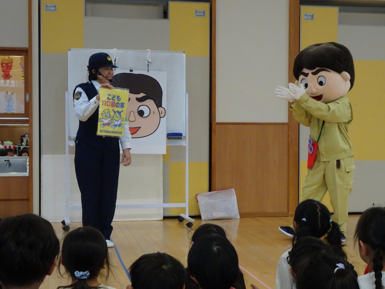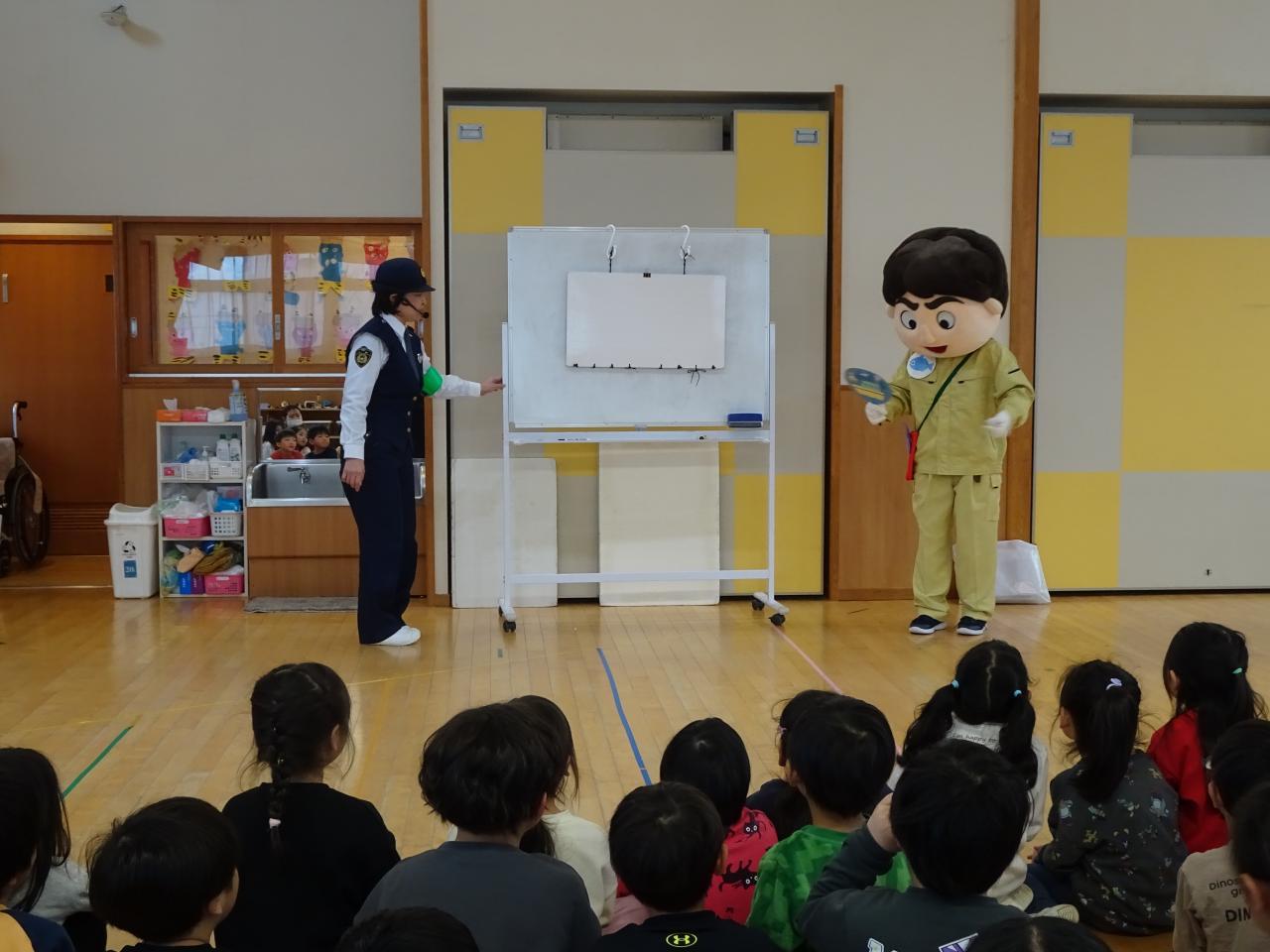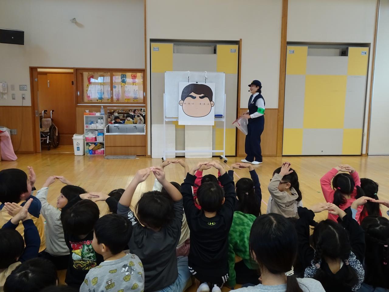 4,5歳児の防犯教室があり、警察署のお巡りさんが自分の身の守り方について教えてくれました🔥