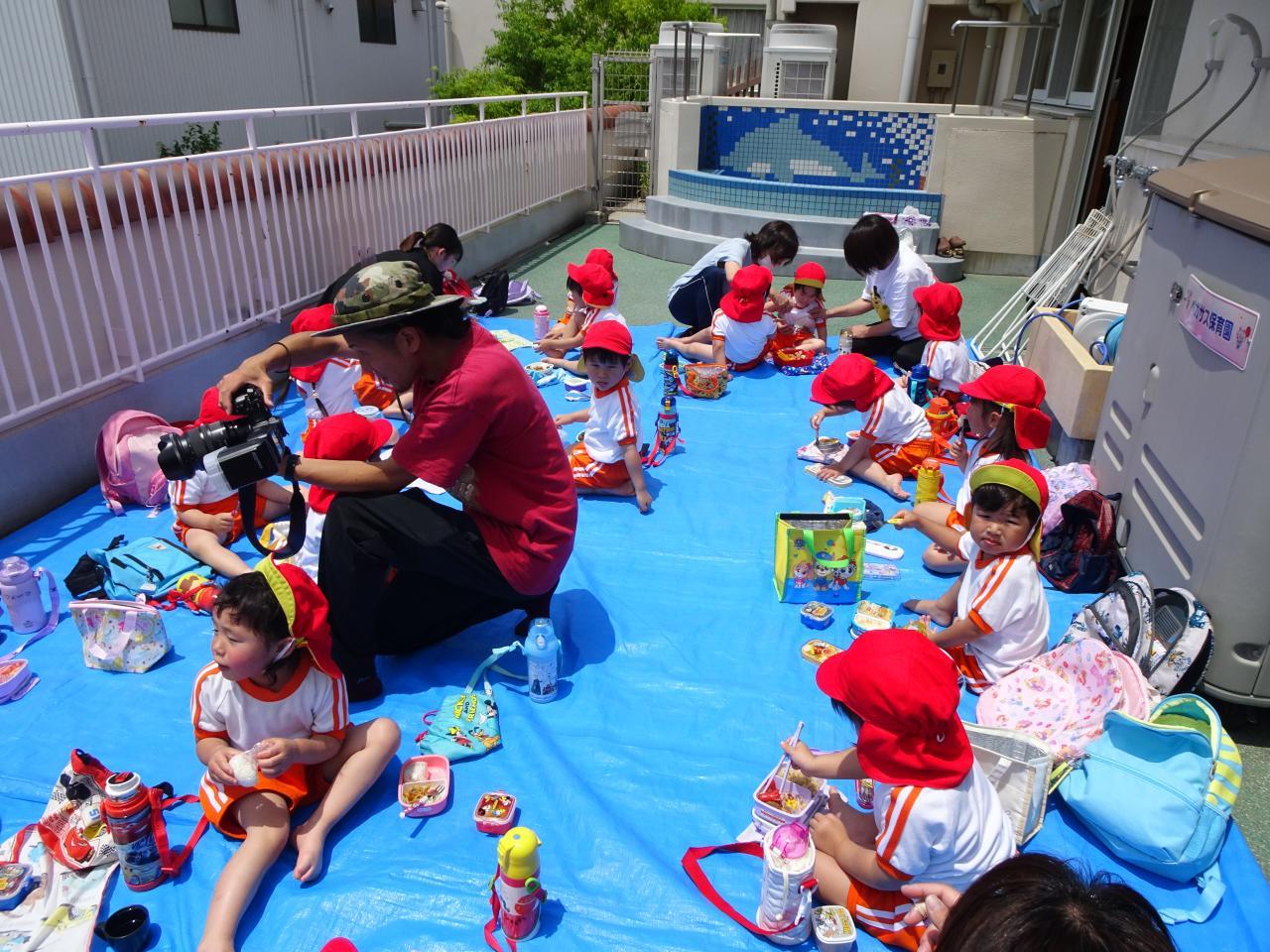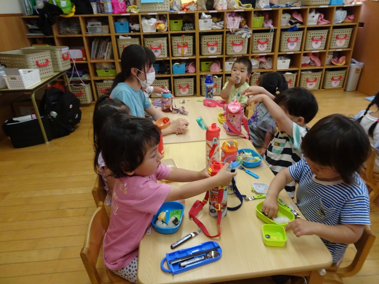 ひかりぐみはお部屋で、にじぐみはテラスでお弁当を食べました。