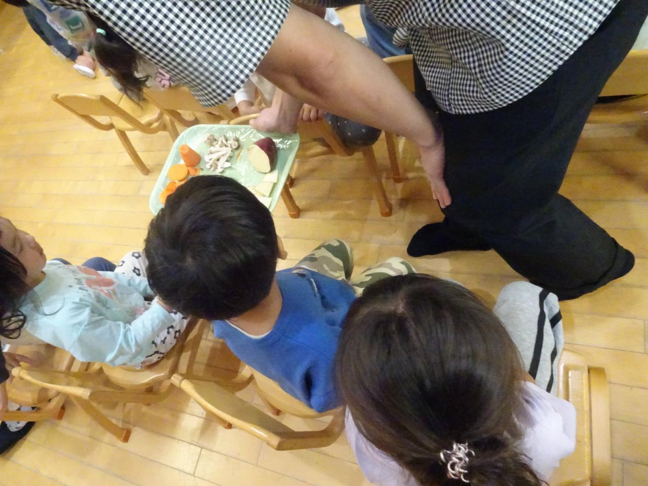 「皆の成長を助けてくれる食べ物、お腹に良い食べ物だよ」と分かりやすく説明してくれましたよ。