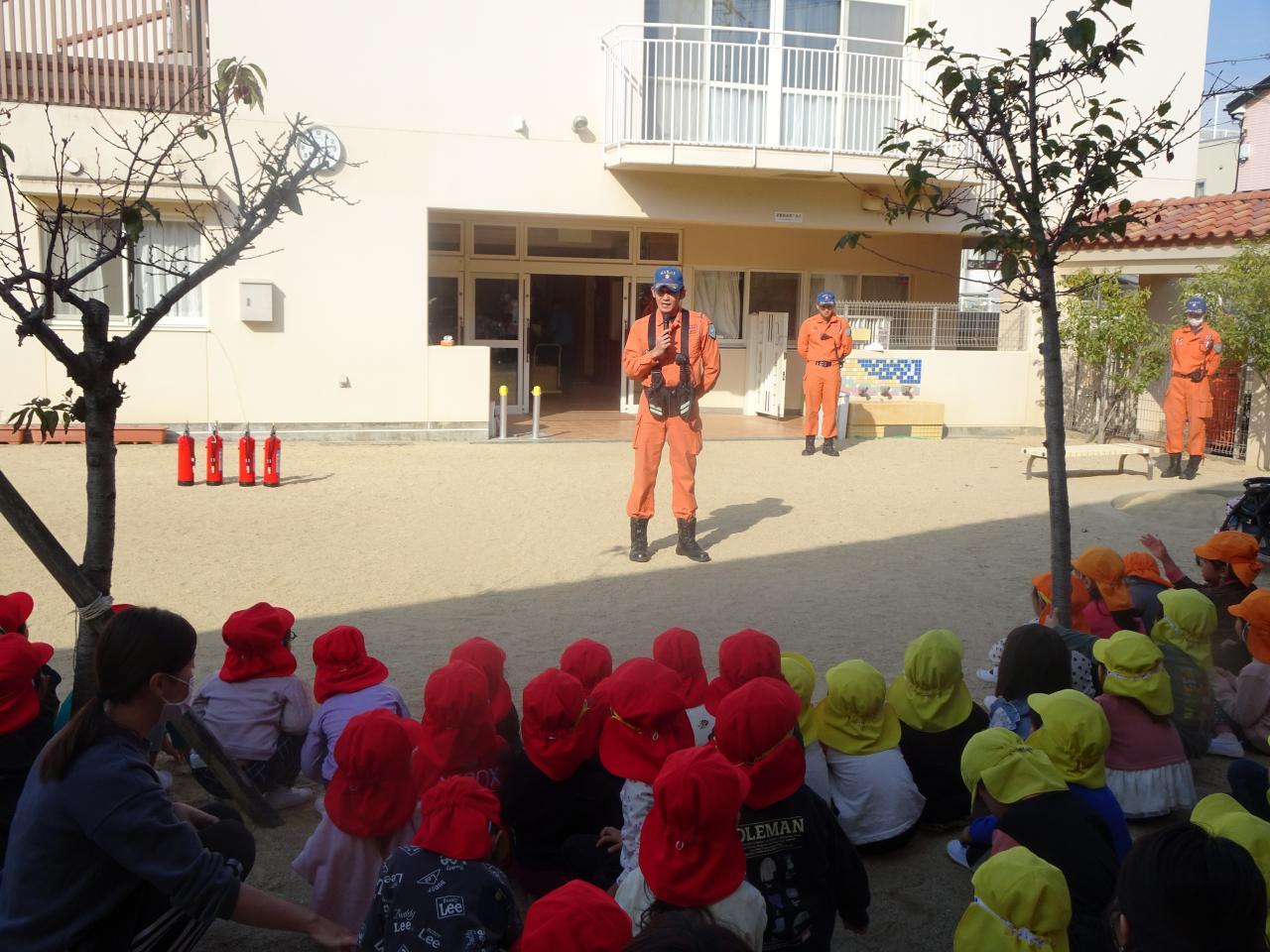 訓練の後は消防士さんから「お(押さない)・は(走らない)・し(喋らない)・も(戻らない)」についてや「火災がおきたらどうしたら良いのか」お話していただきました!